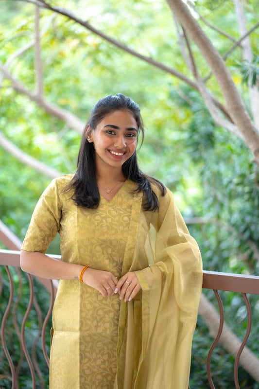 AA139 Green Lotus Shimmer Silk with Banarasi Weaving 3 Pc Set