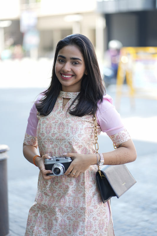 AA138 white with Pink Chanderi Silk Kurti