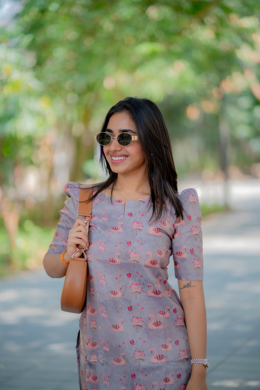 AA190 Grey Swan Shimmer Tissue Silk Kurtih