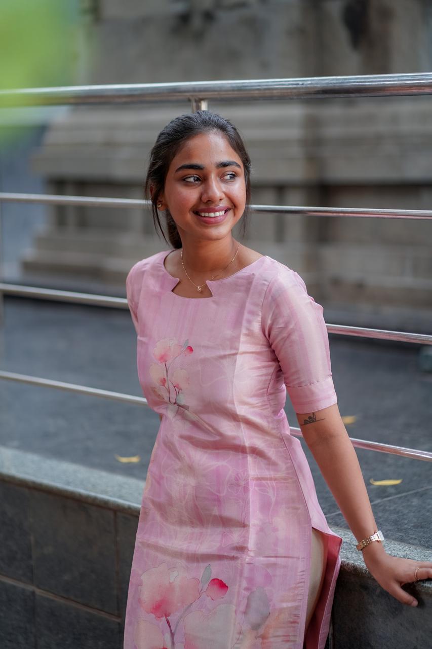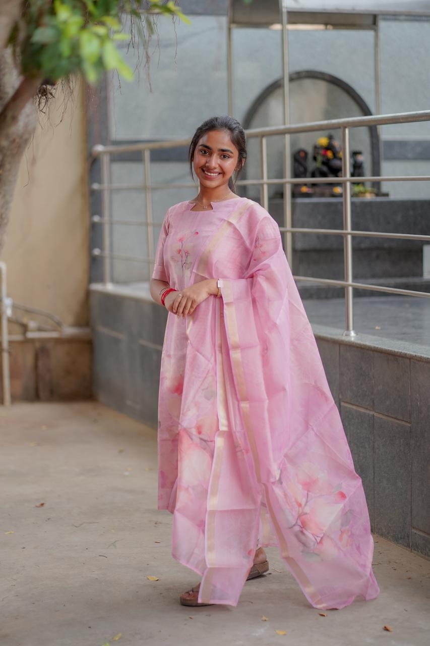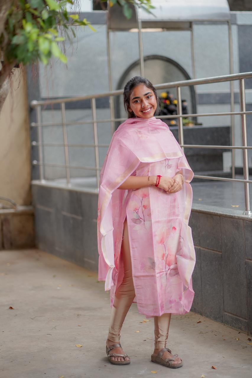 AA005 Pink Organza Kurti