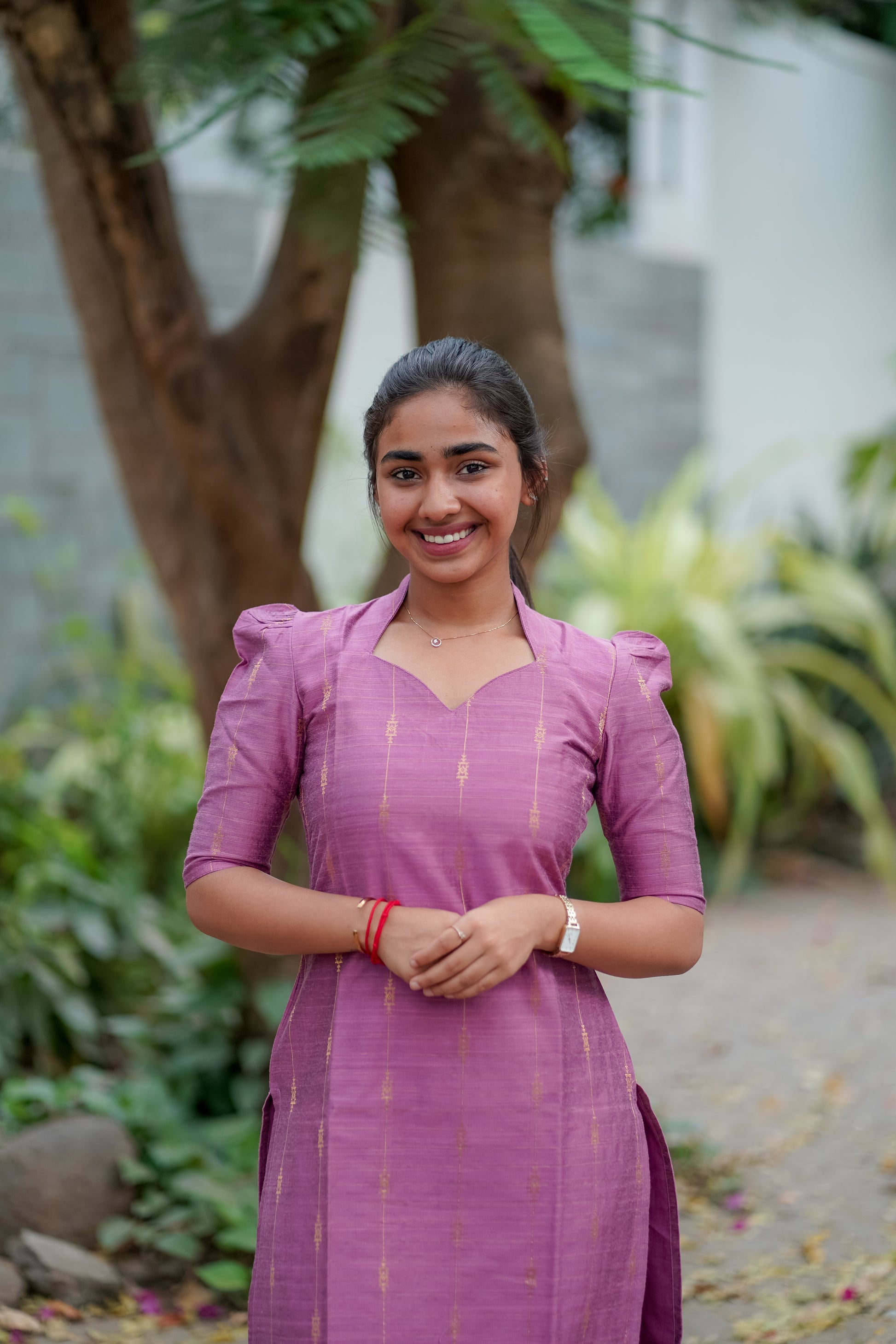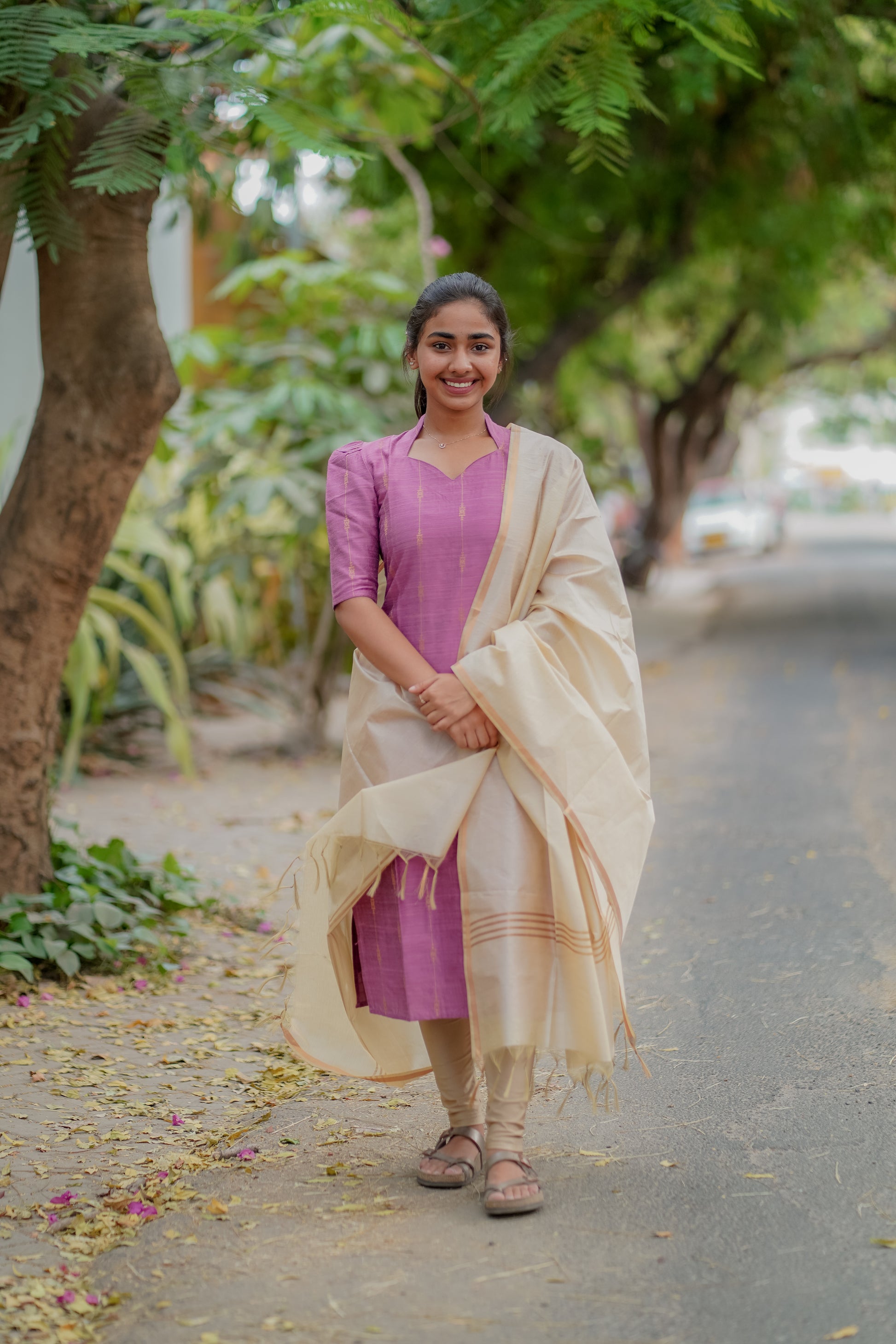 AA010 Lavender Pink Kurti & Dupatta With Gold lines