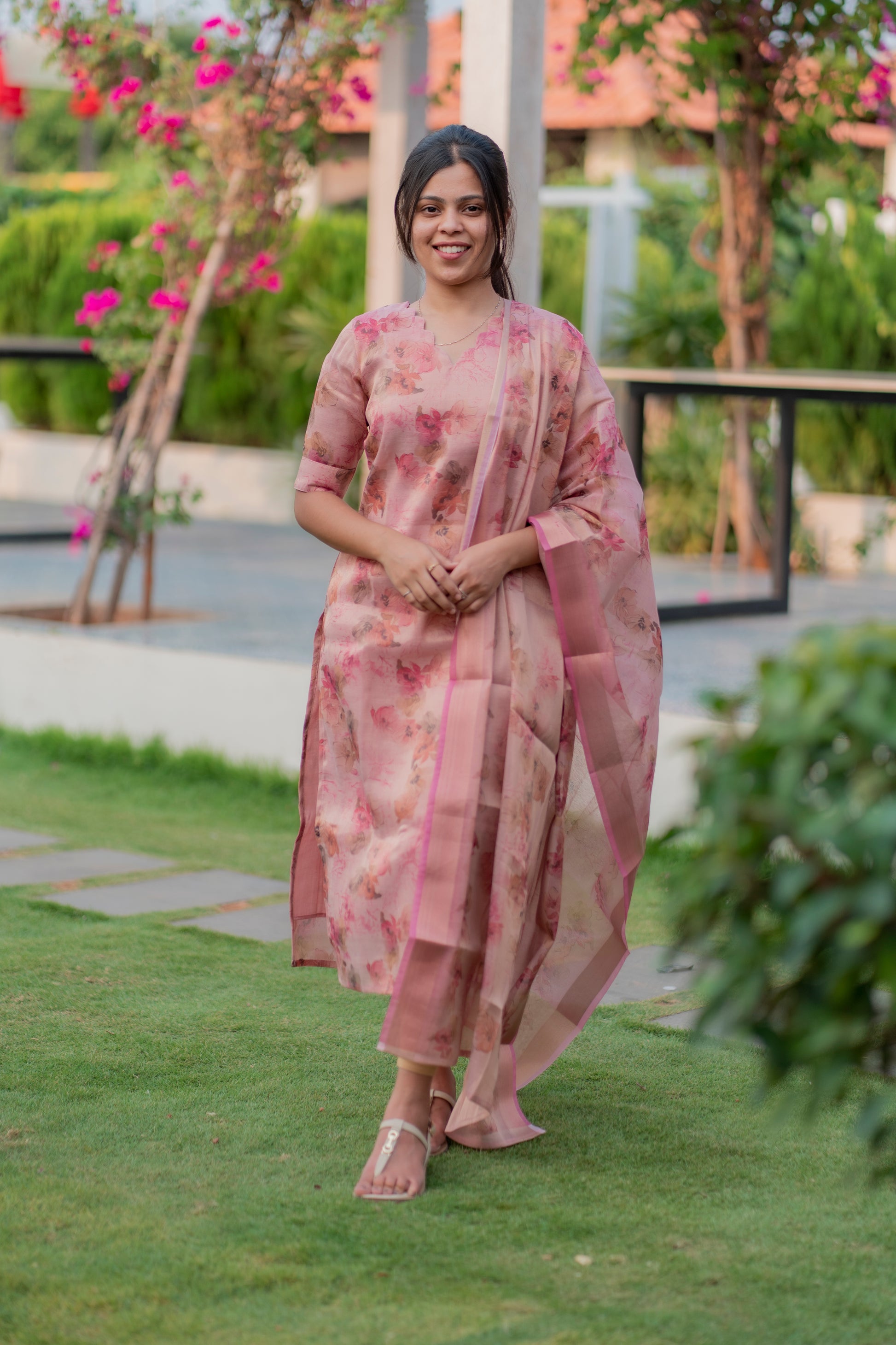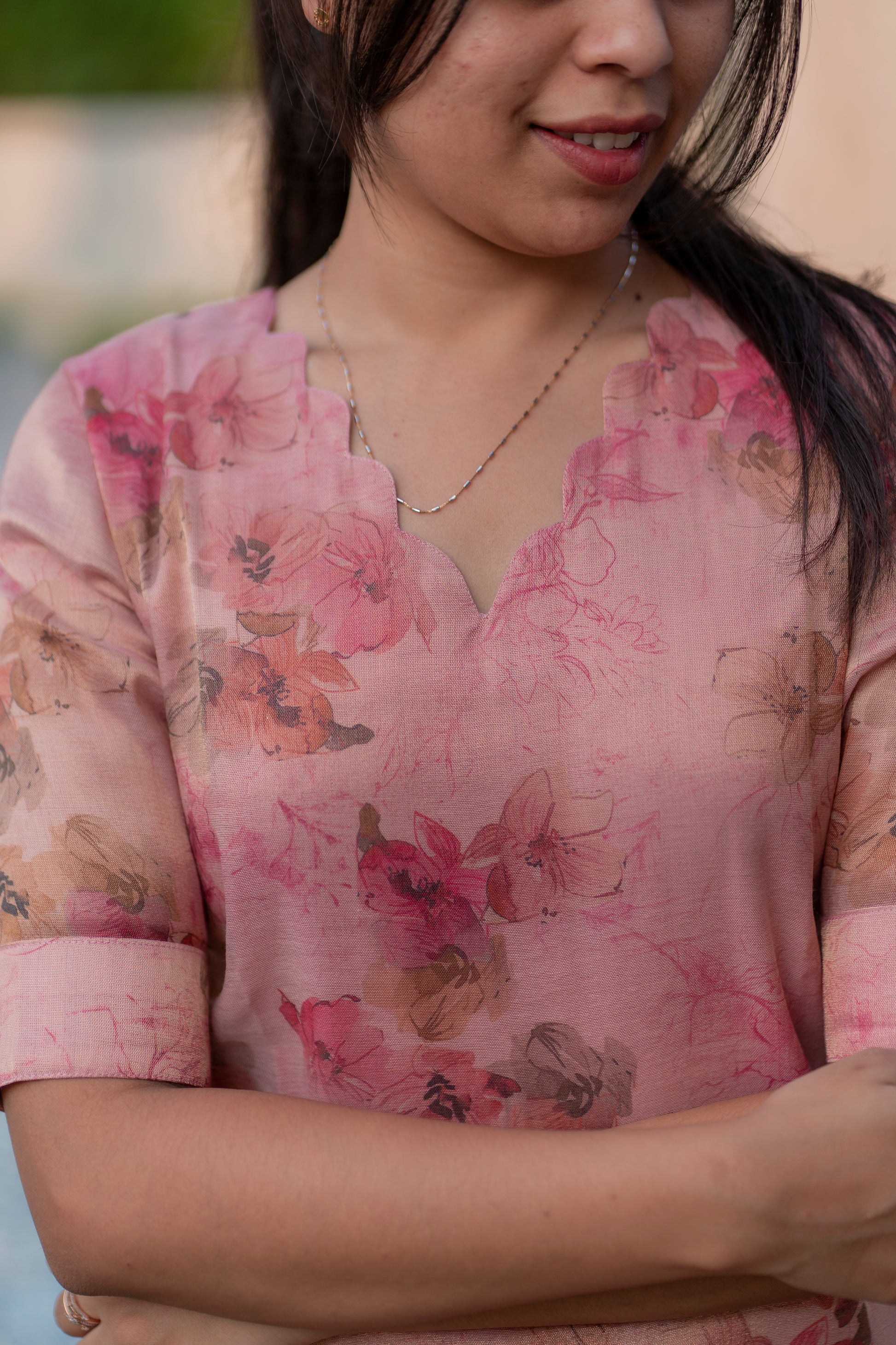 AA021 Tissue Shimmer Silk Kurti With Dupatta