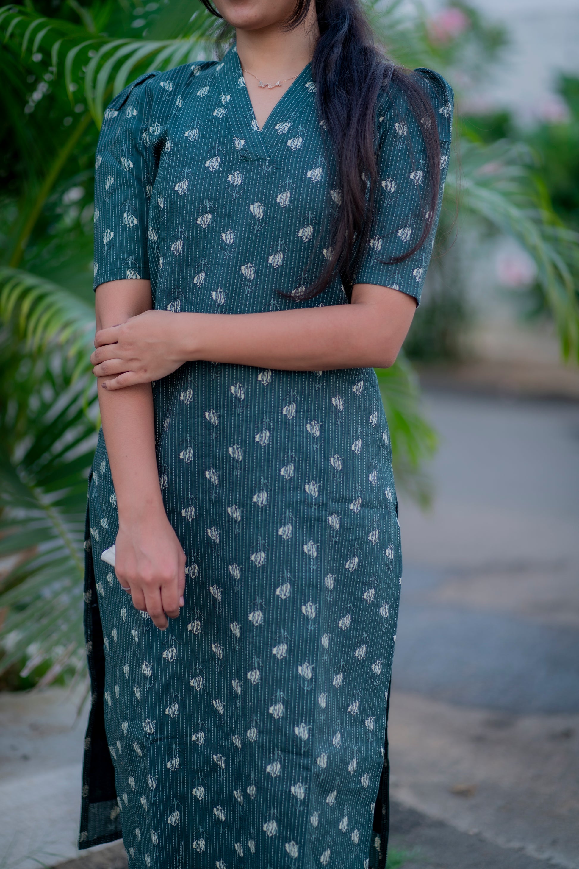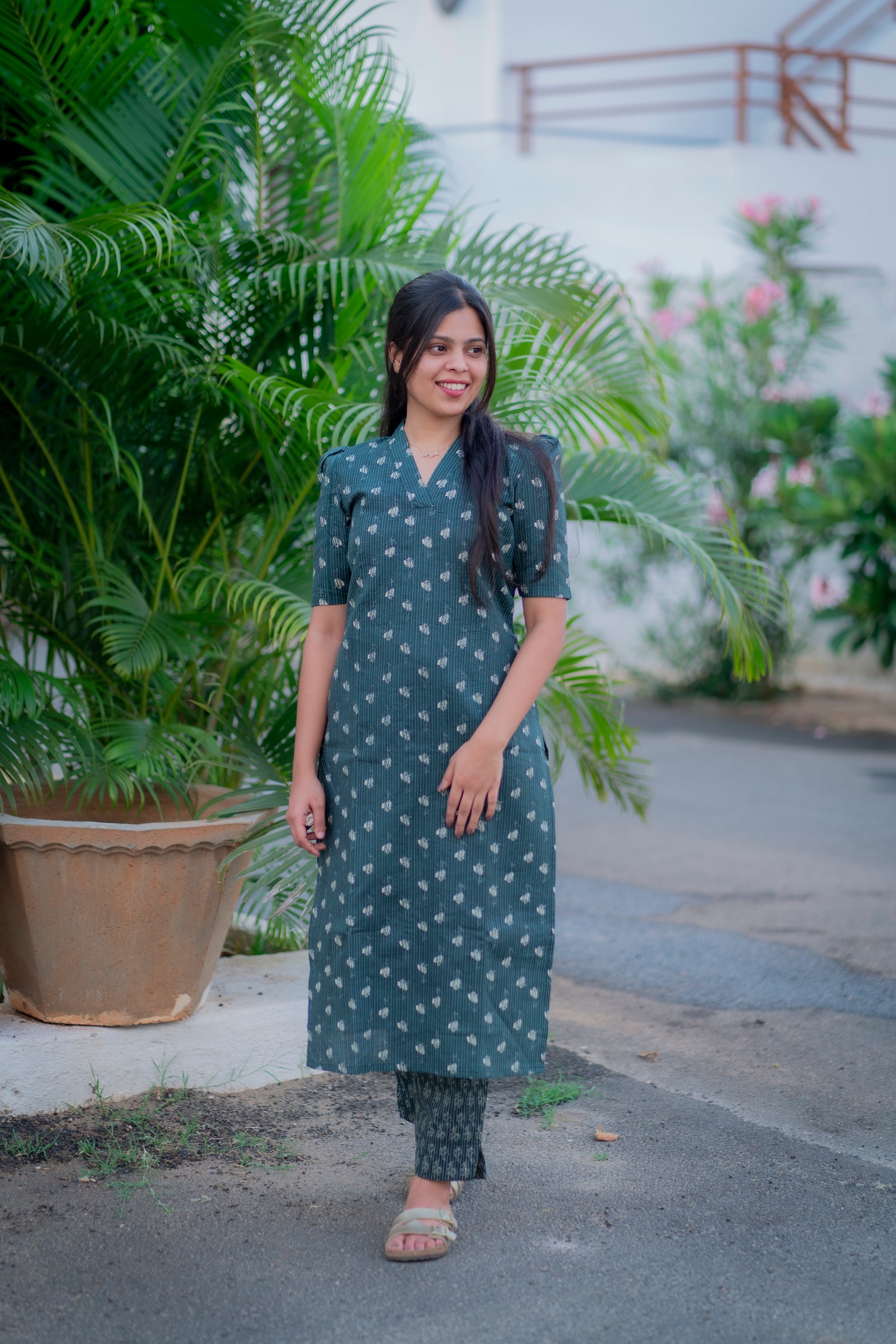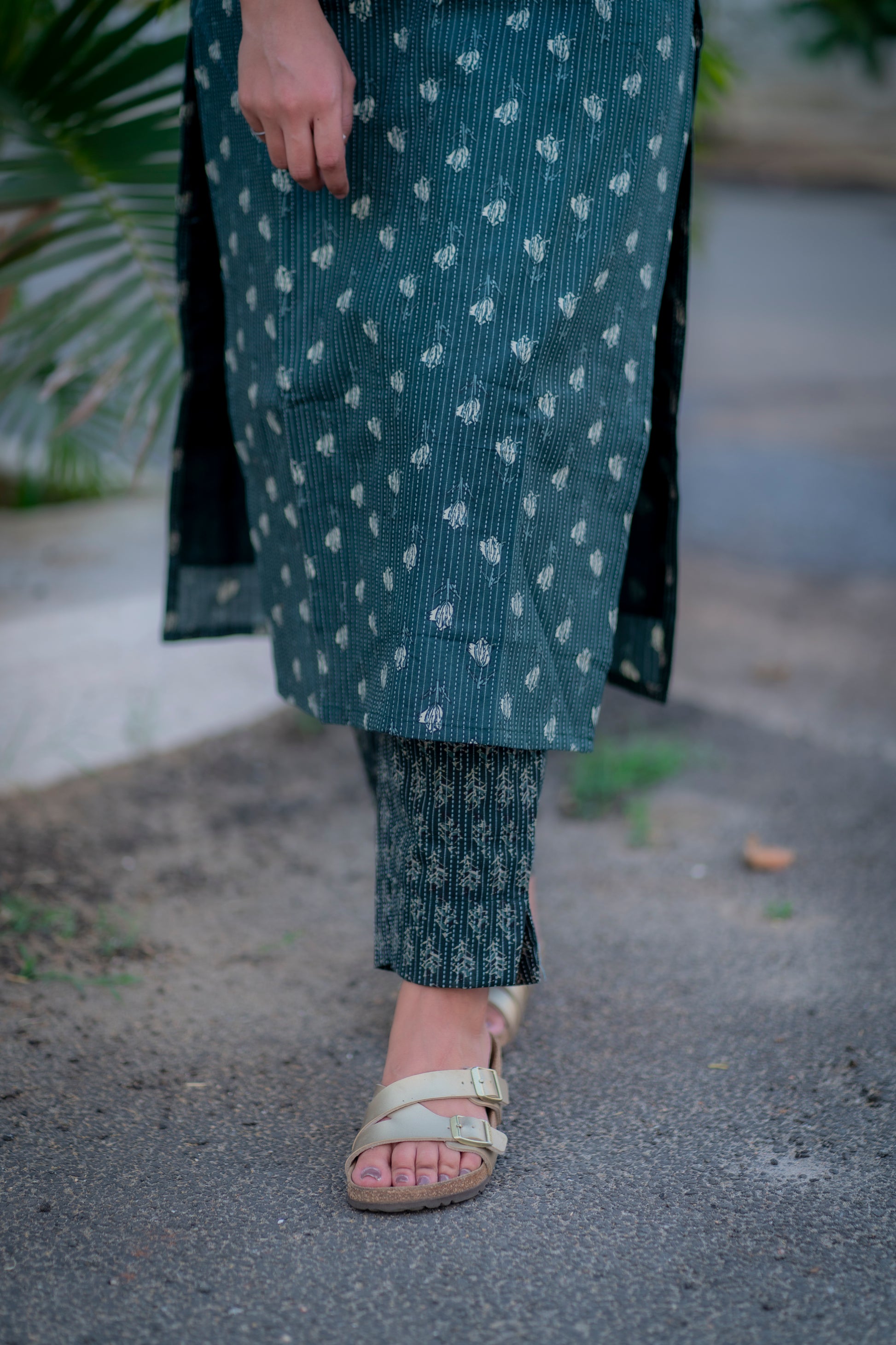 AA030 Dark Blue Kantha Cotton Co-Ord Set with Lining