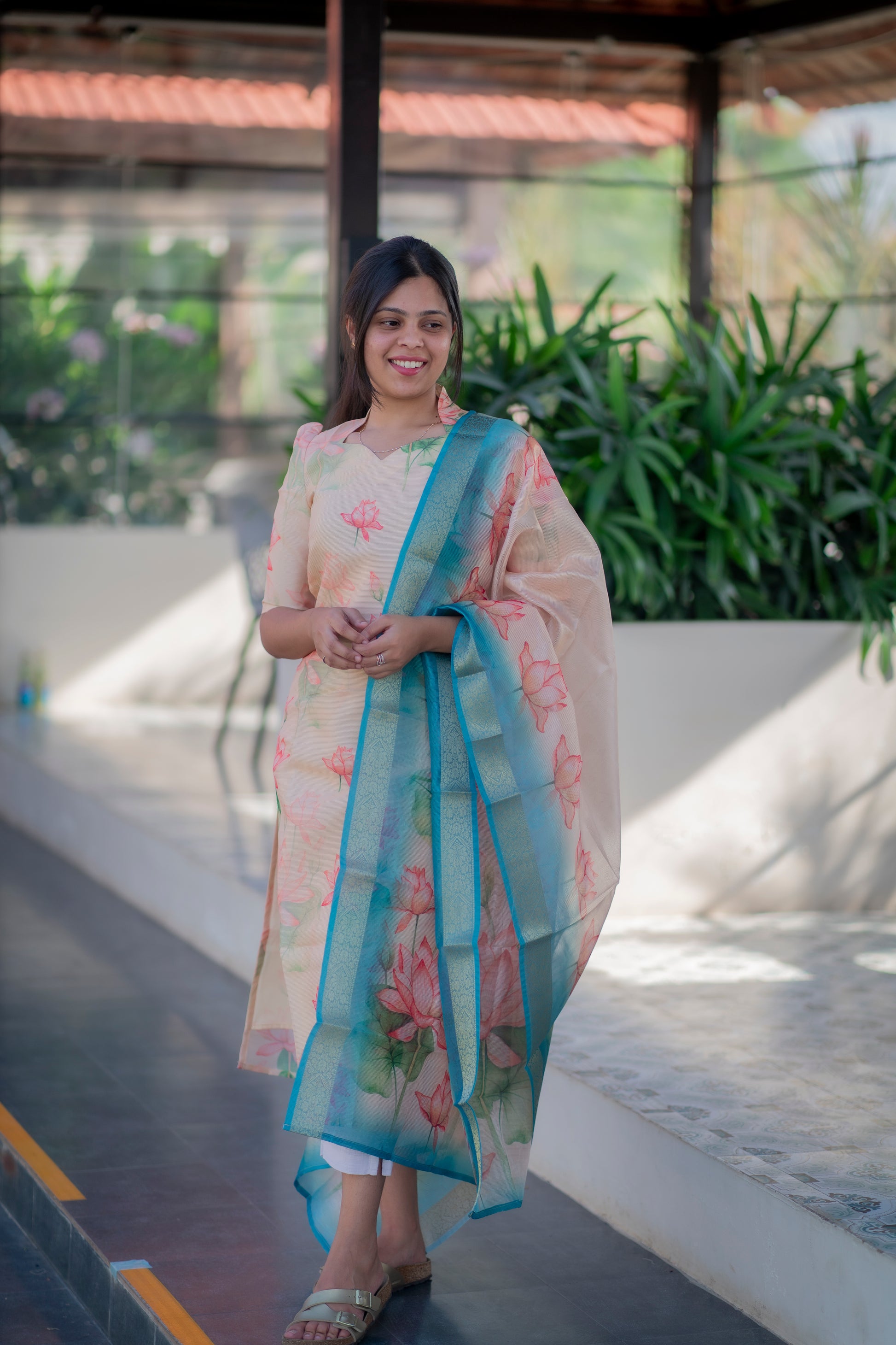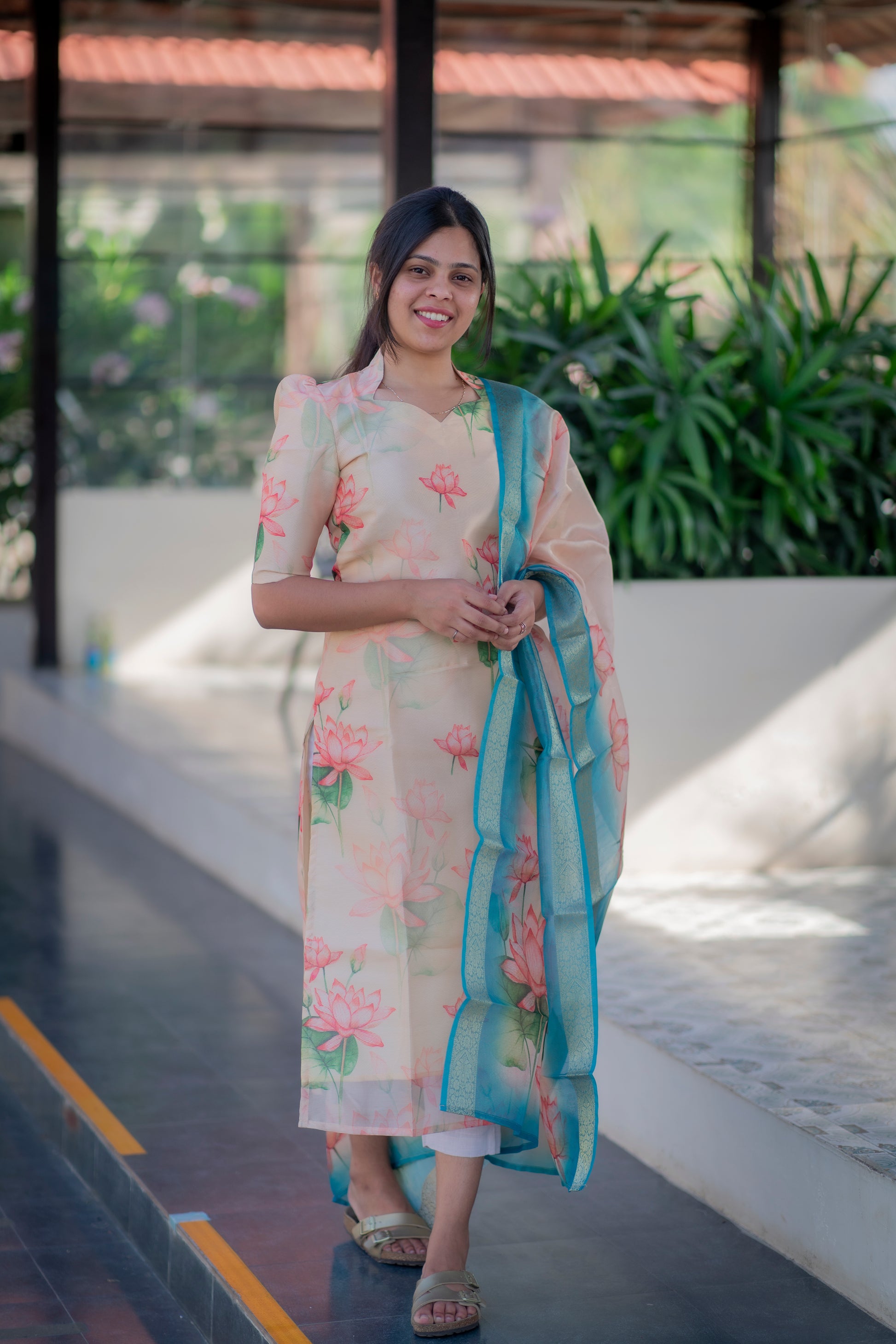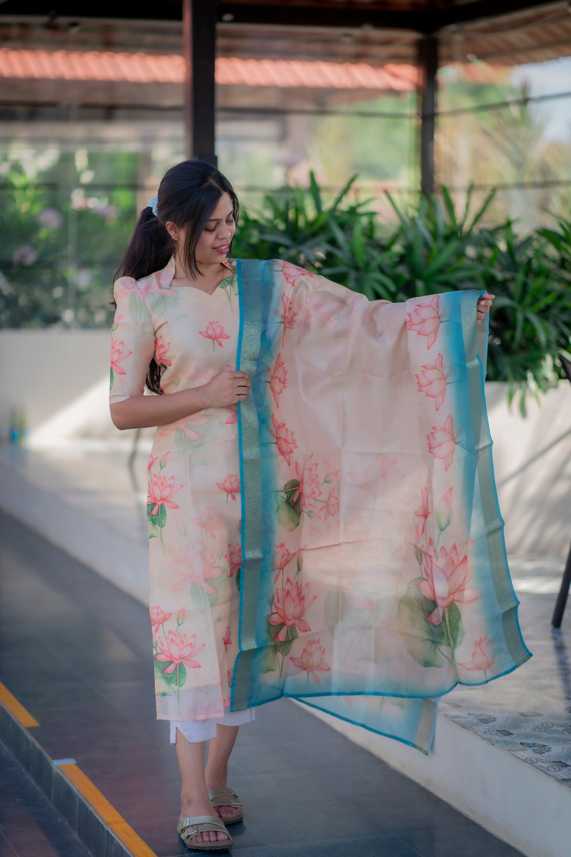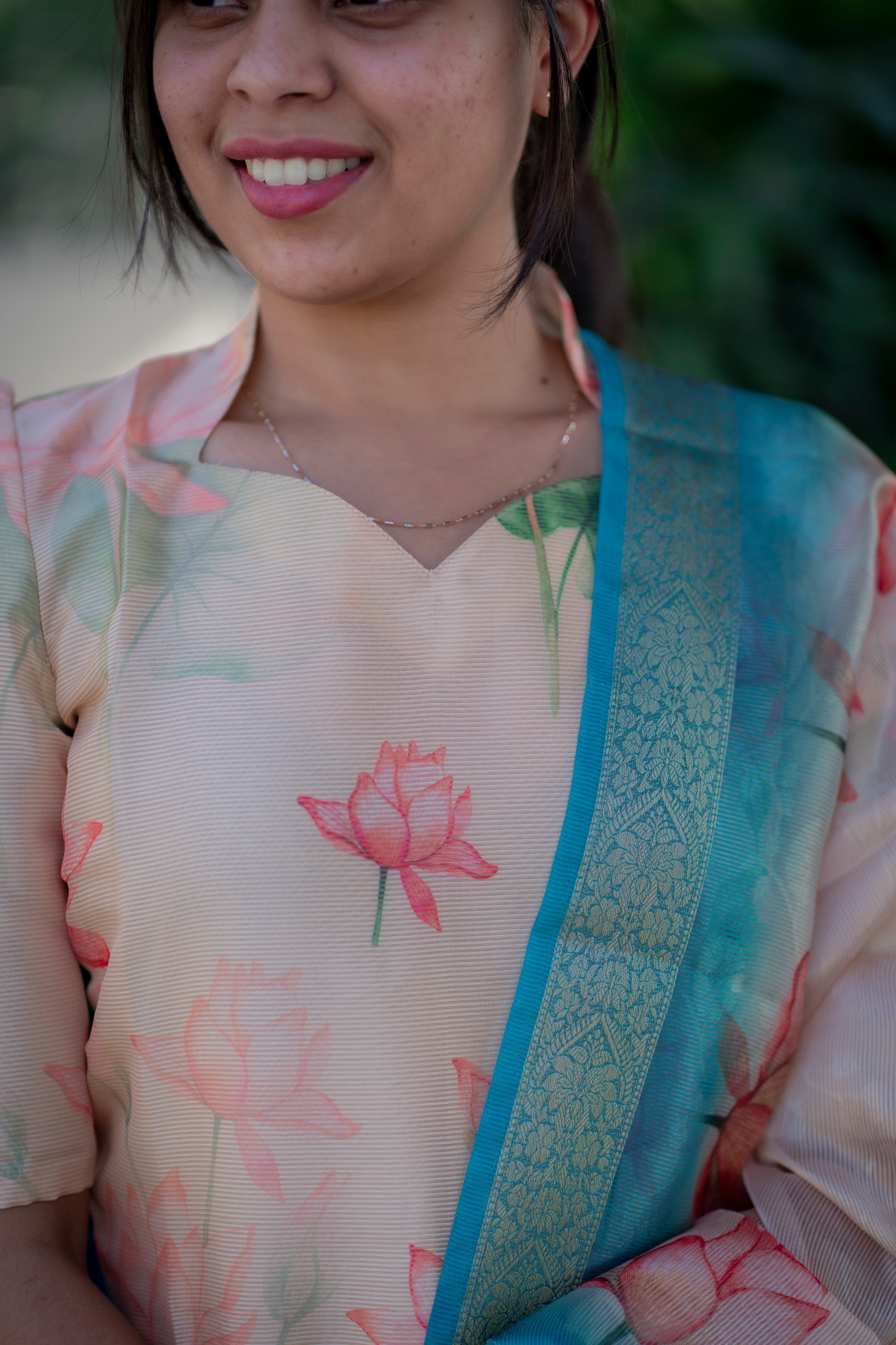 AA035 Golden Tissue Silk Kurti with Dupatta