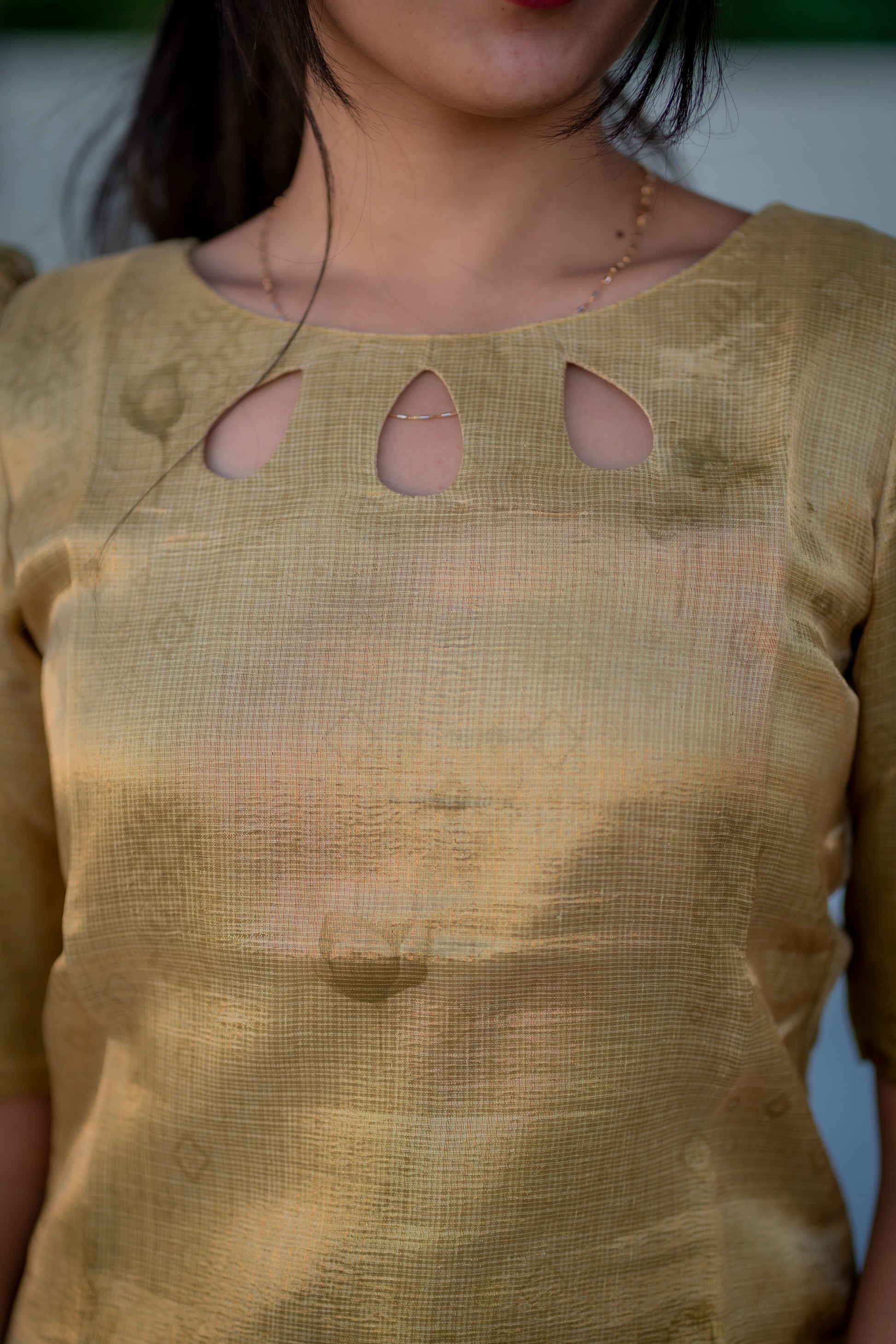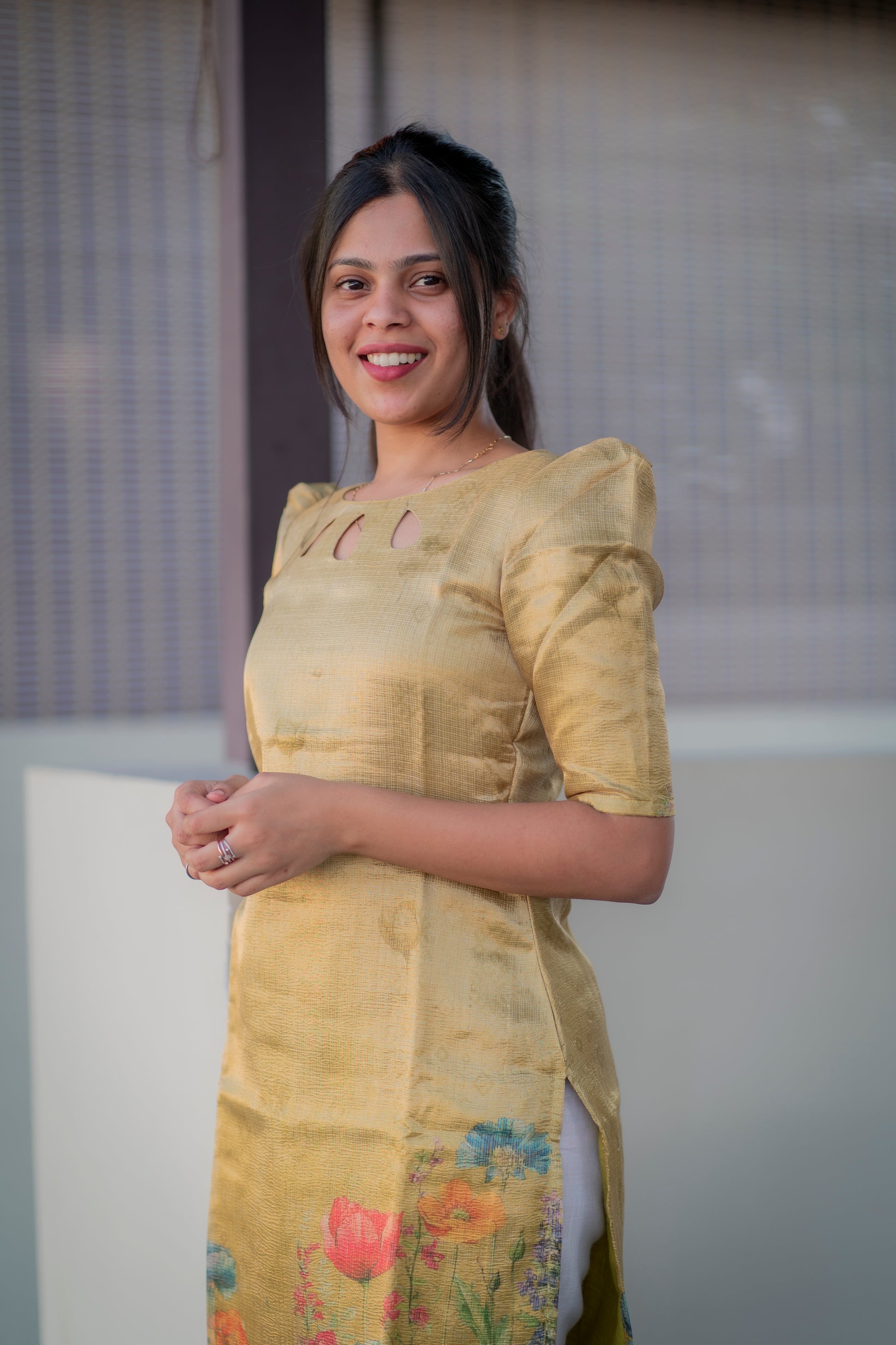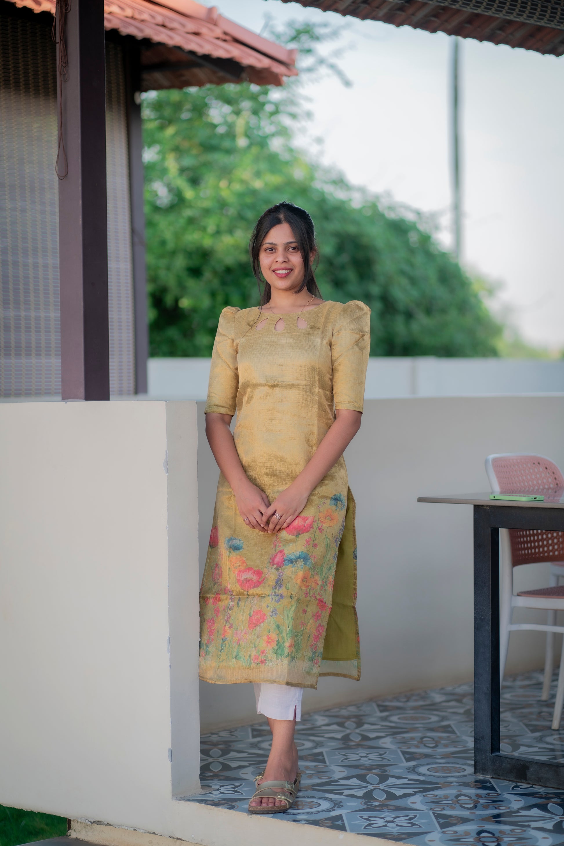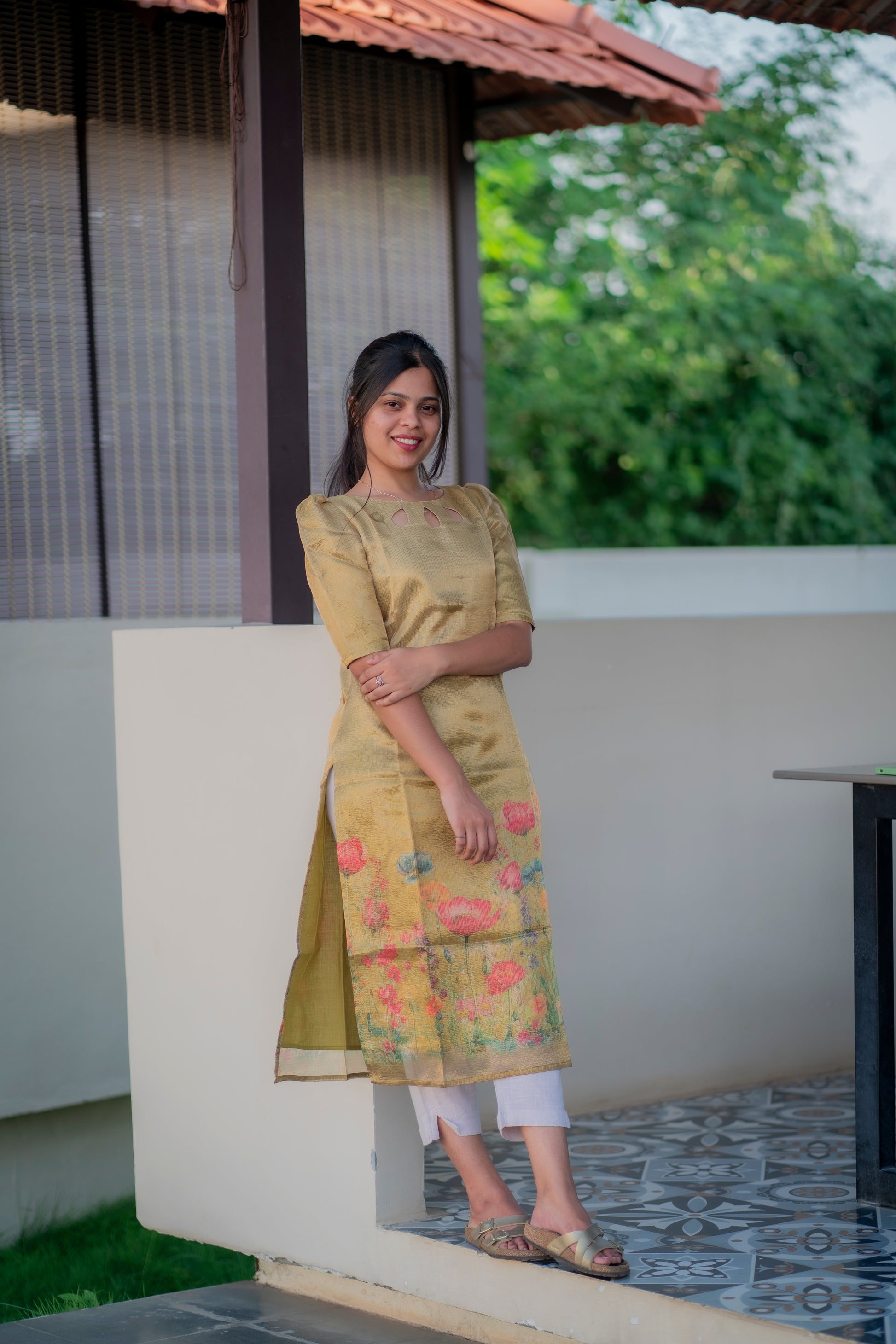 AA038 Green Floral Kota Shimmer Silk Kurti