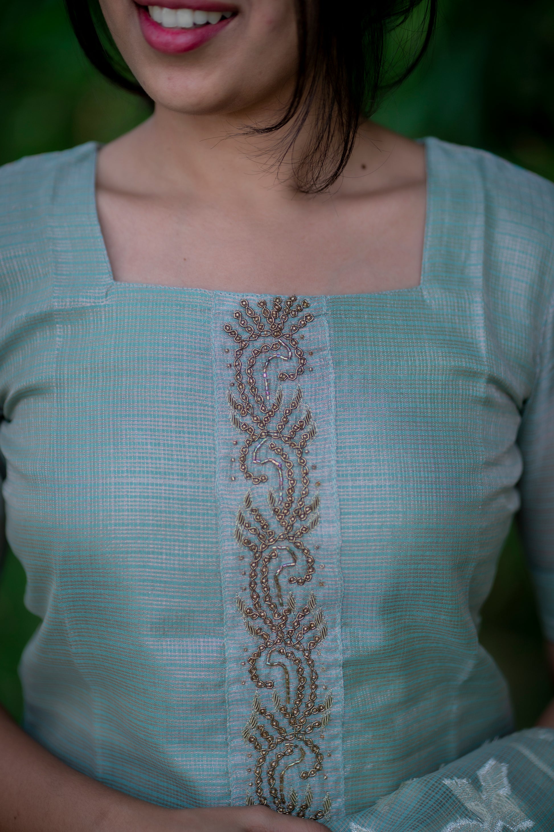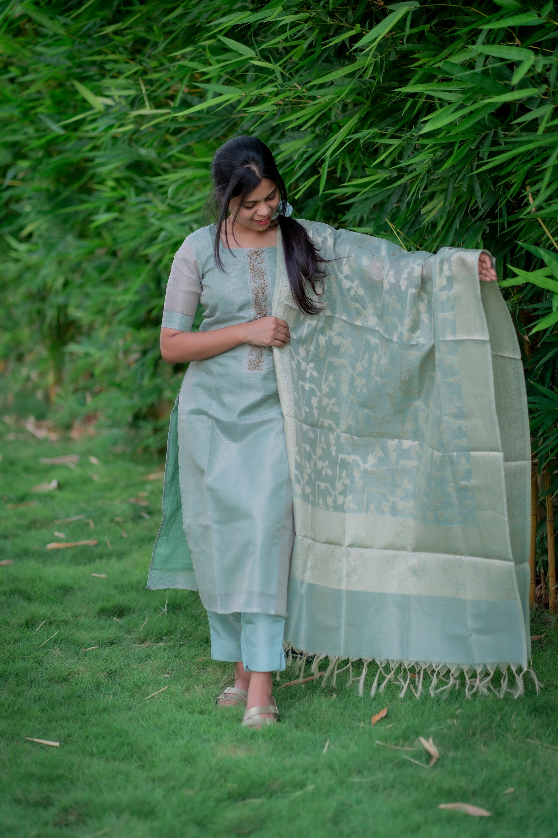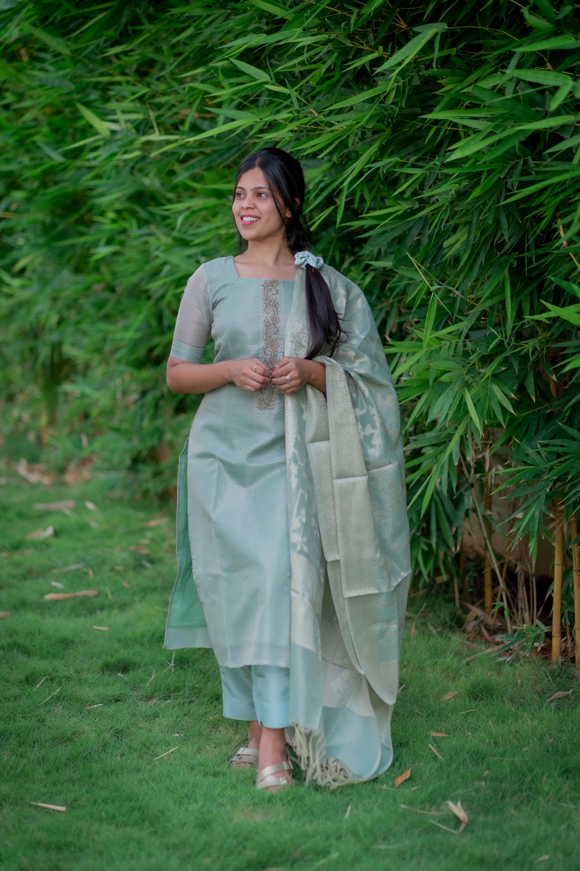 AA051 Turquoise Tissue Silk Salwar 3 Pc Set