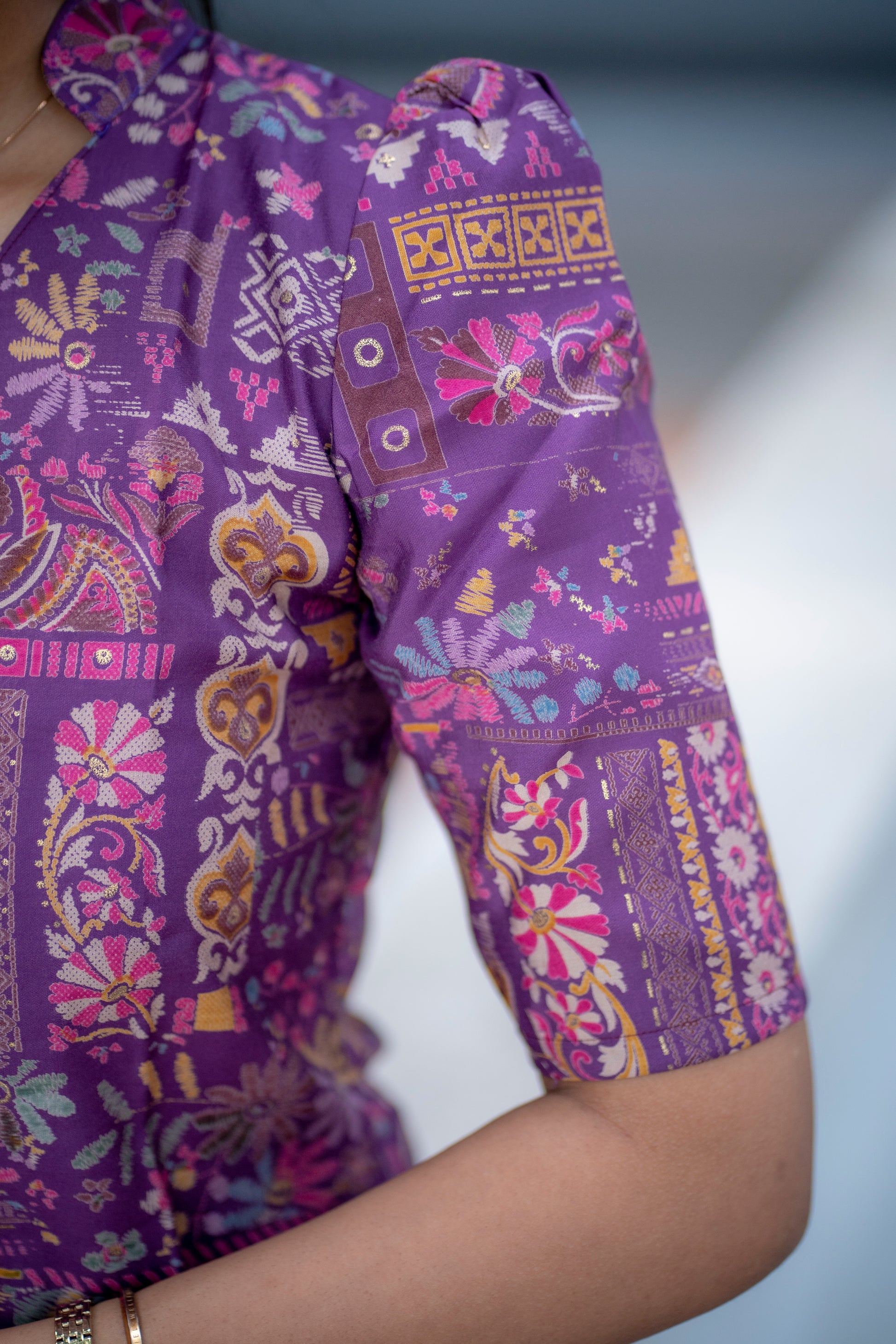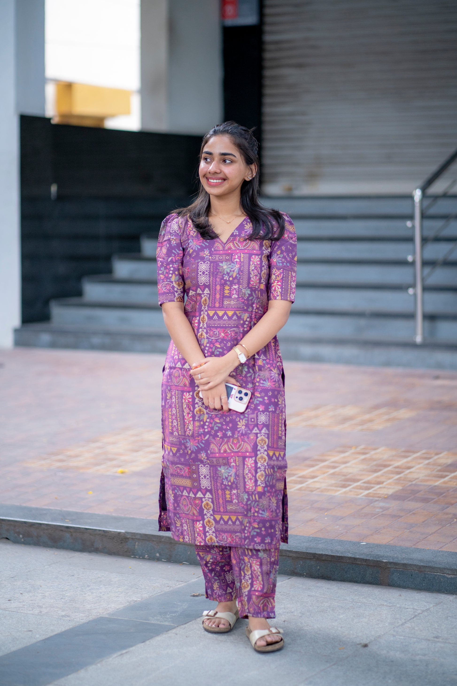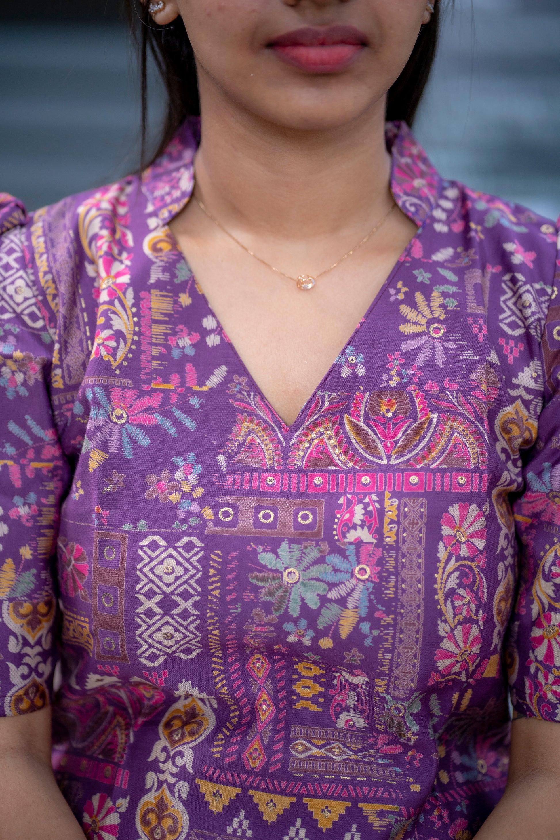 AA078 Violet Floral Printed Silk Co-Ord Set