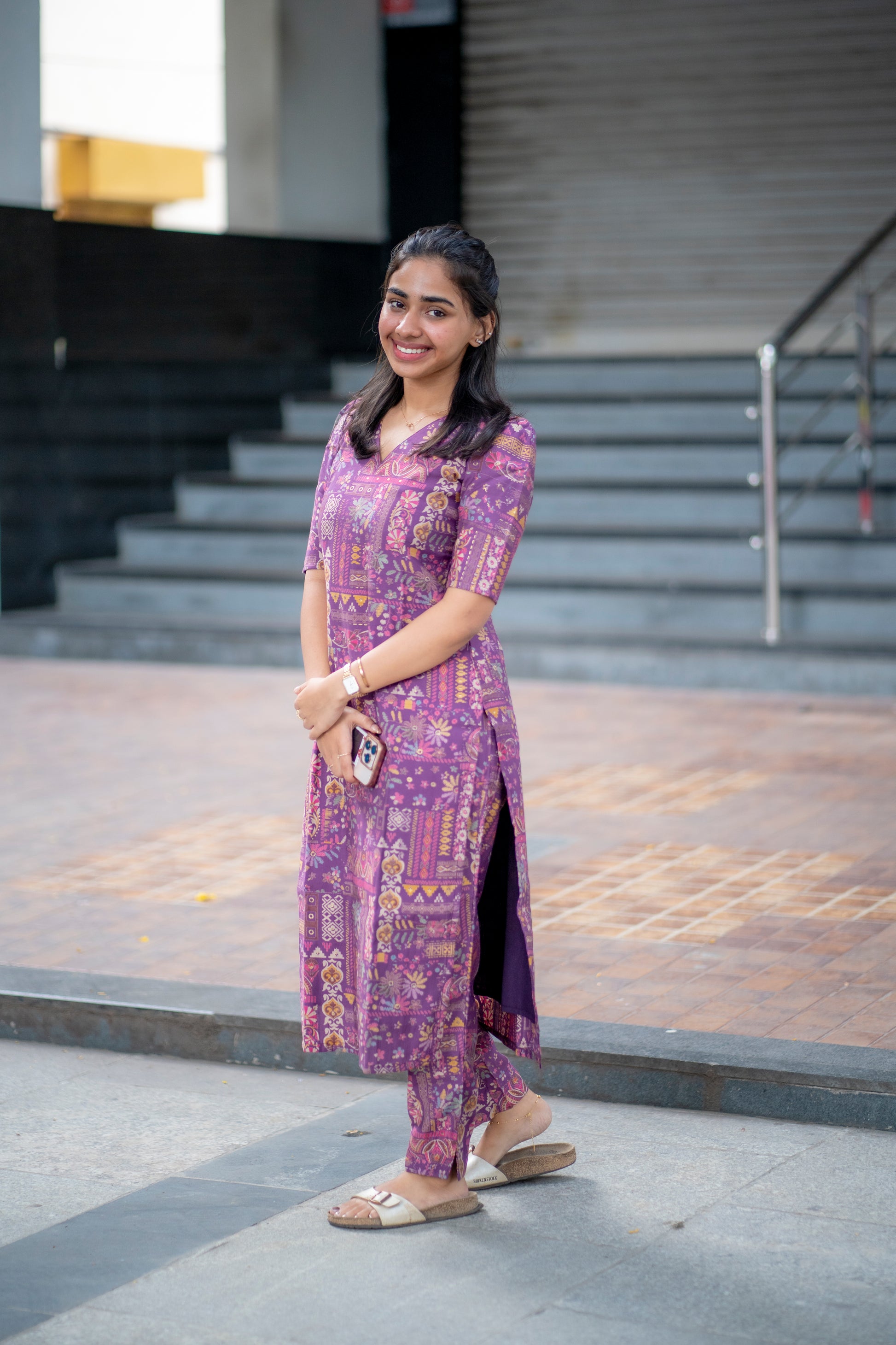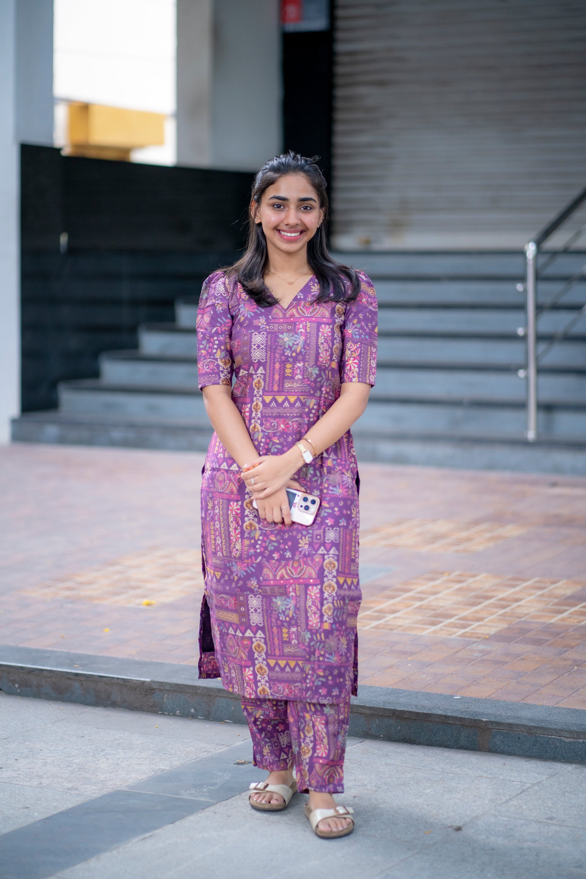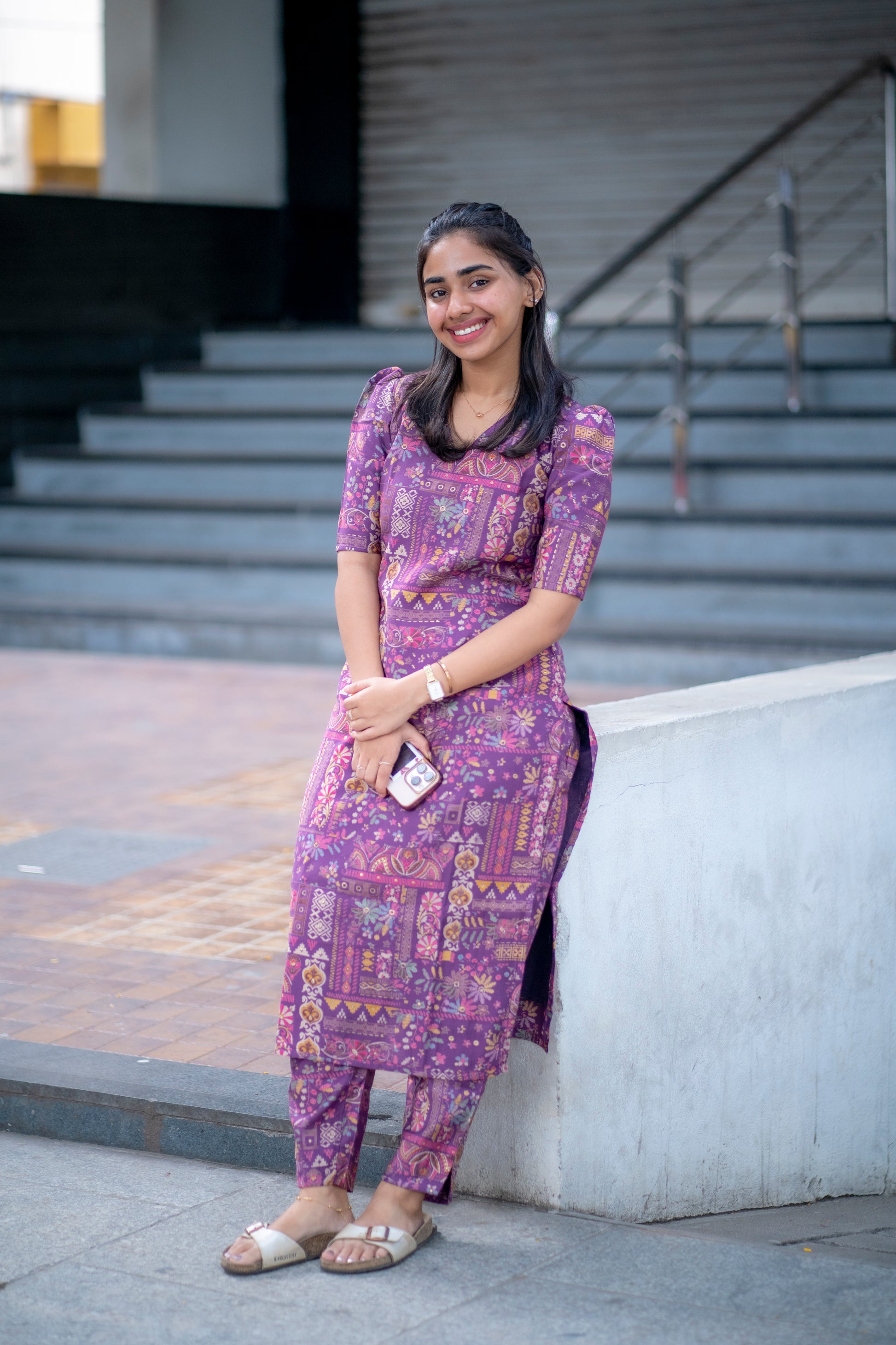 AA078 Violet Floral Printed Silk Co-Ord Set