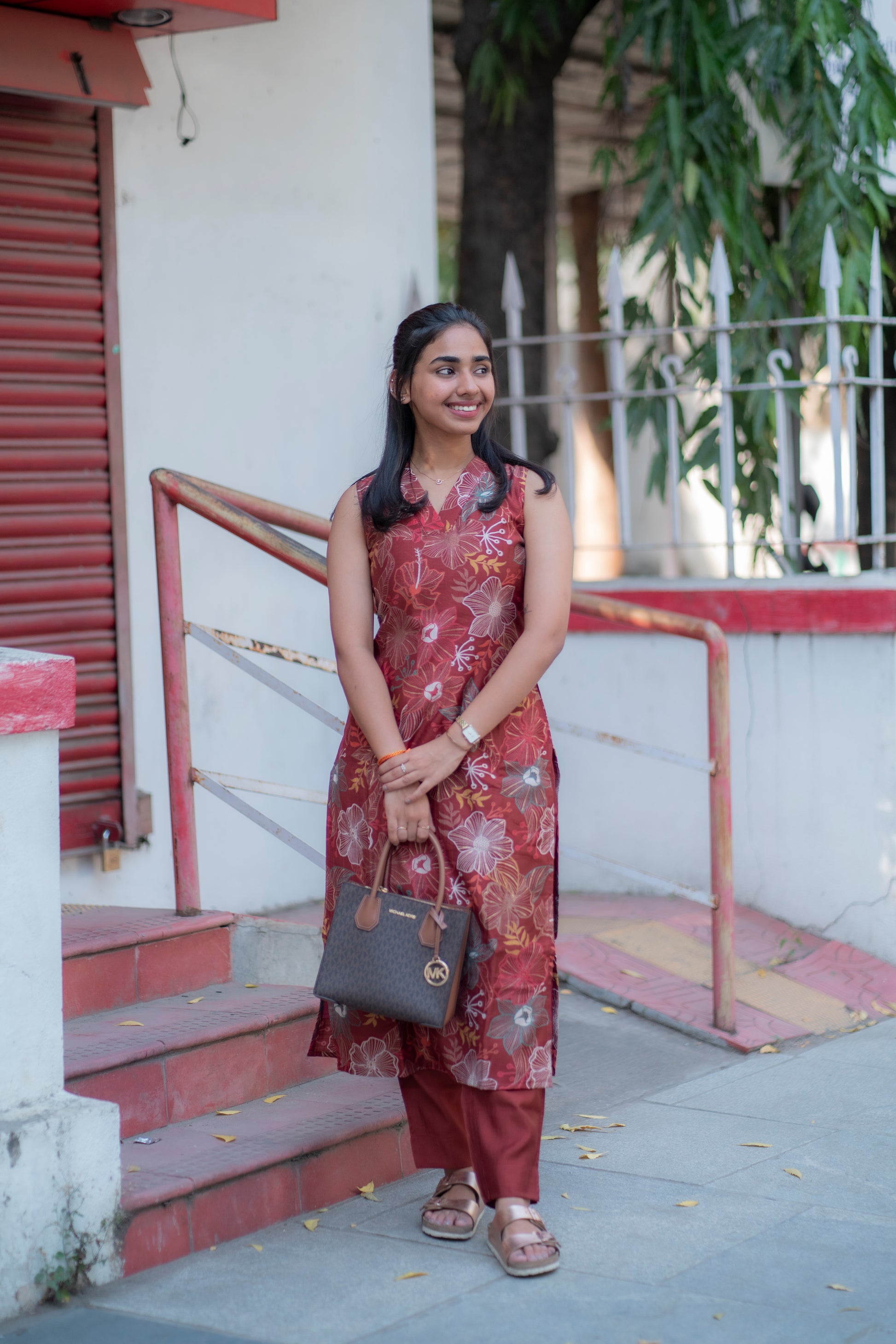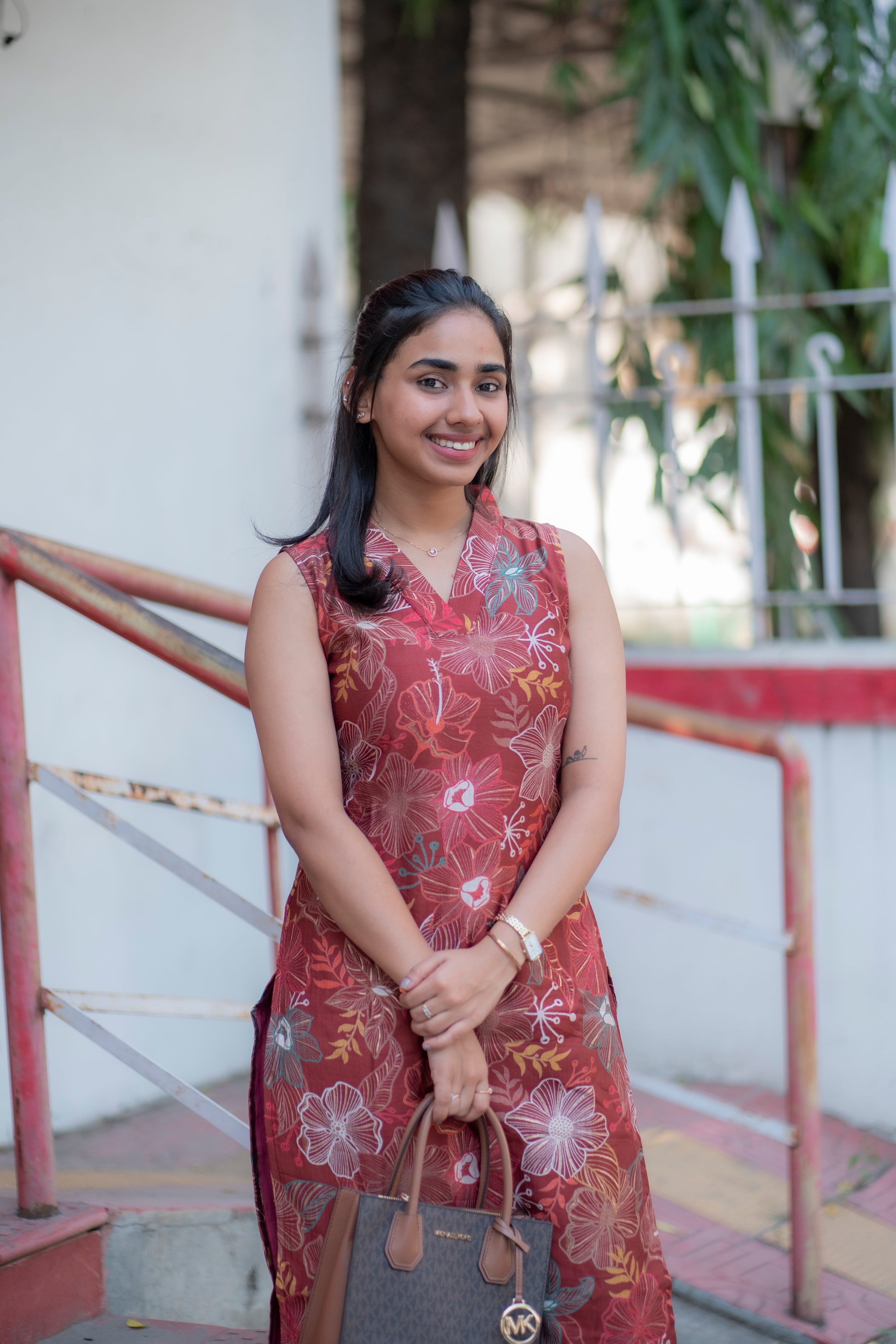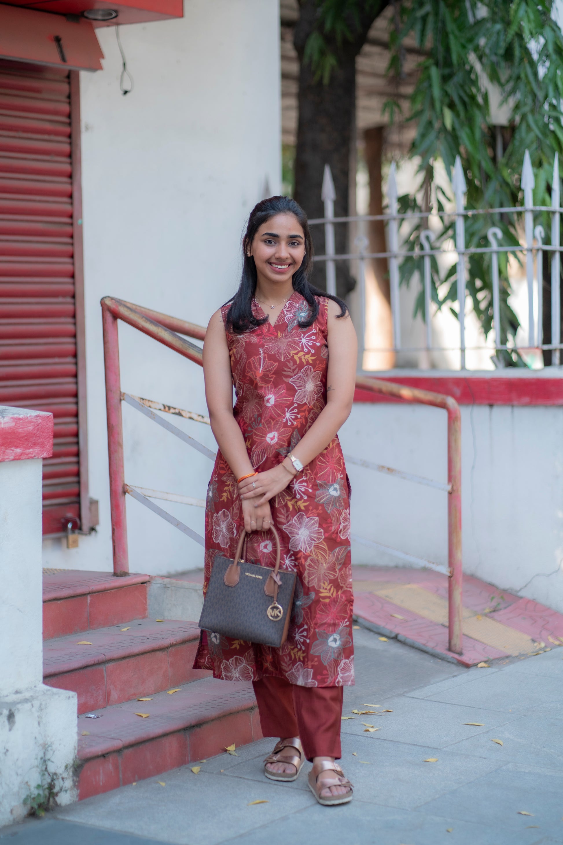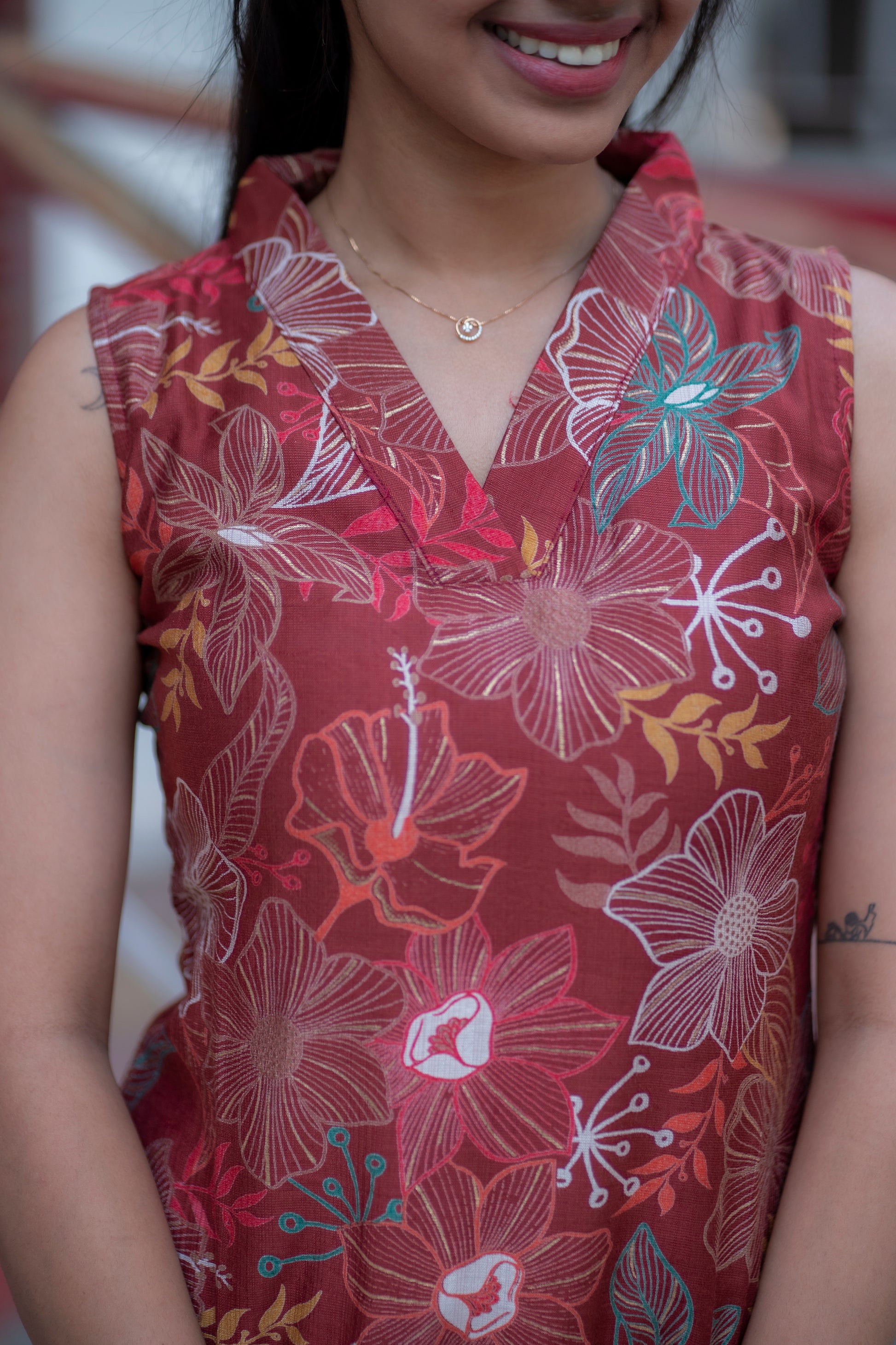 AA091 Muslin Silk Maroon Floral Co Ord Set
