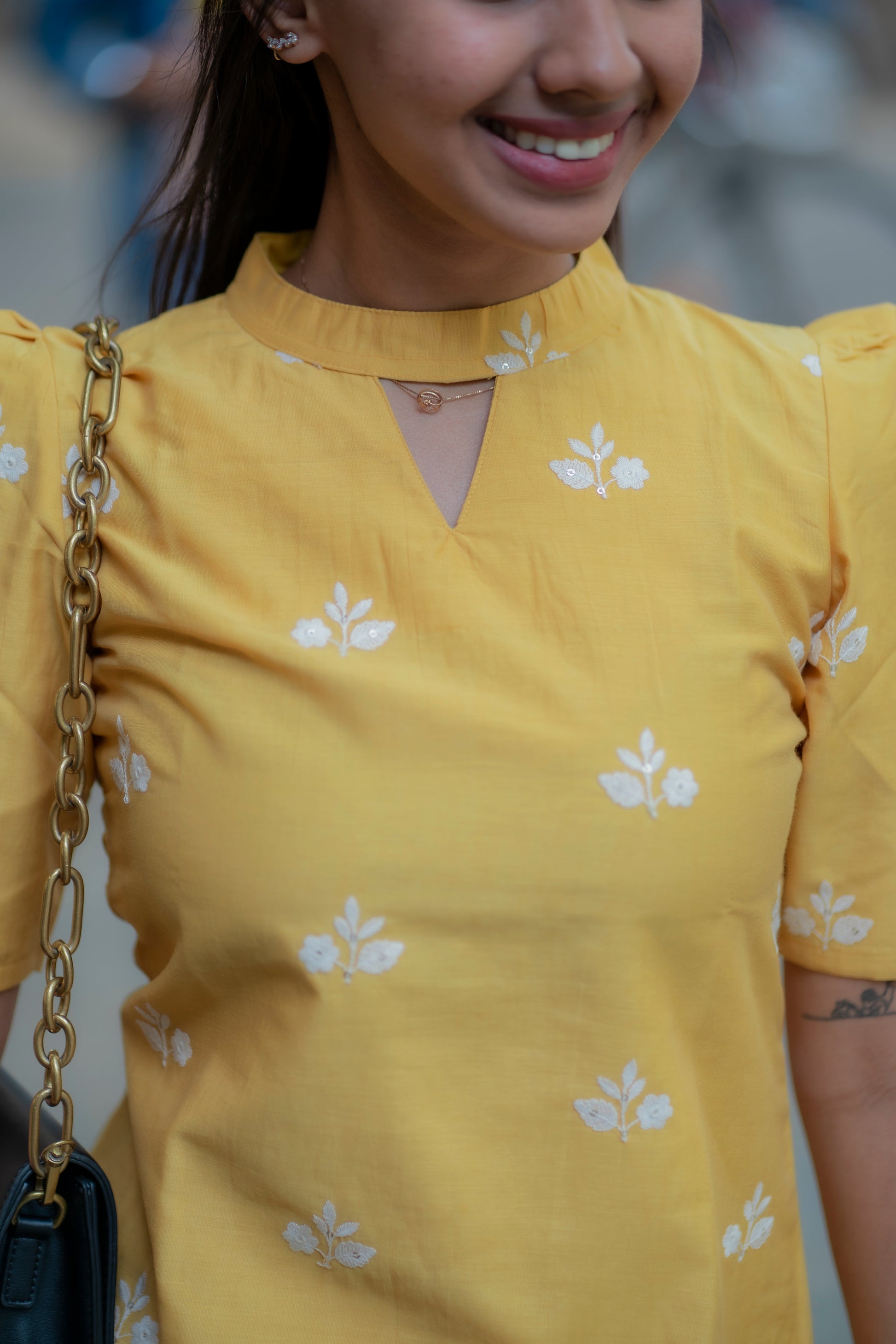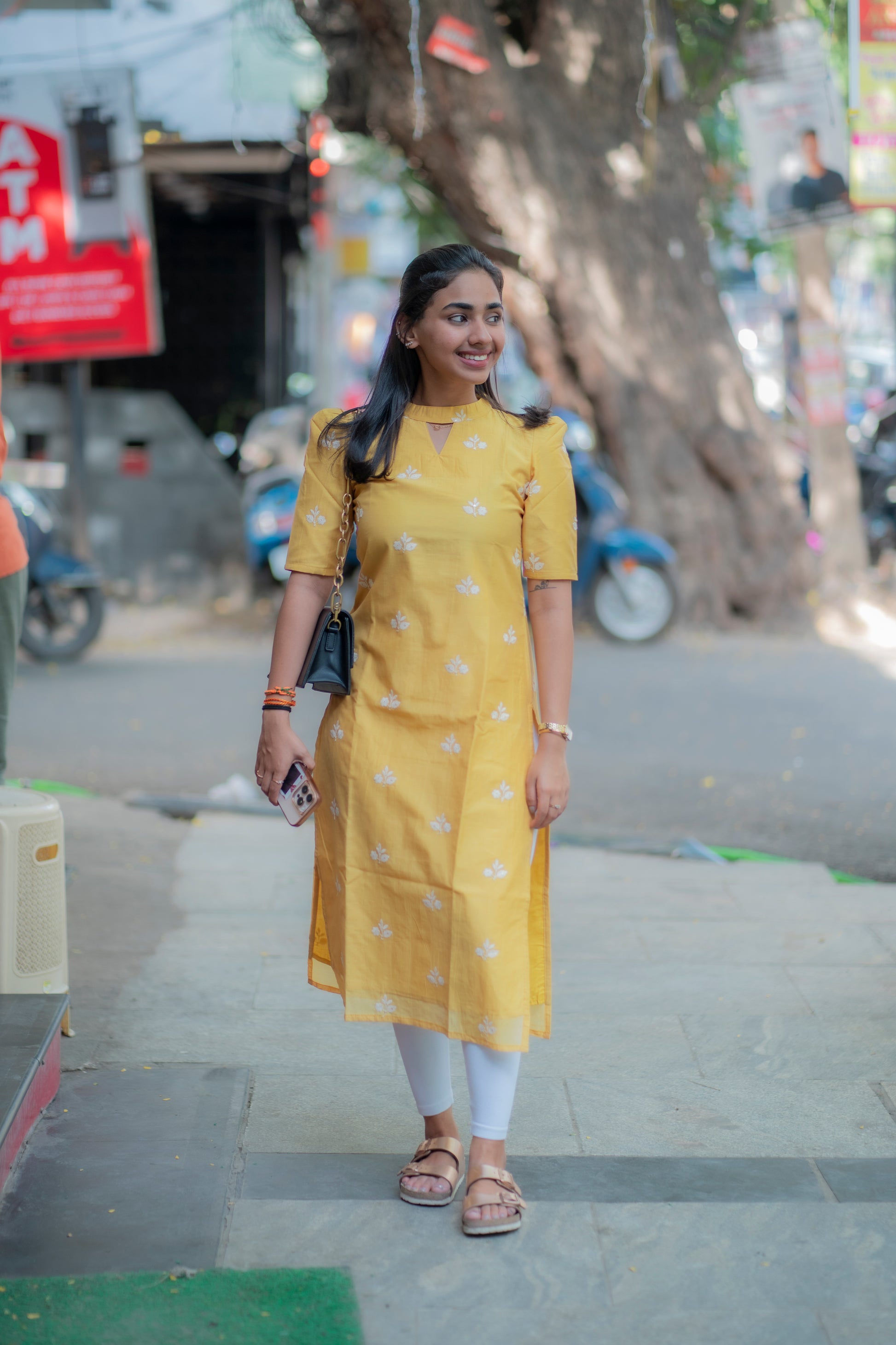 AA093 Yellow Mul Chanderi Silk Kurti