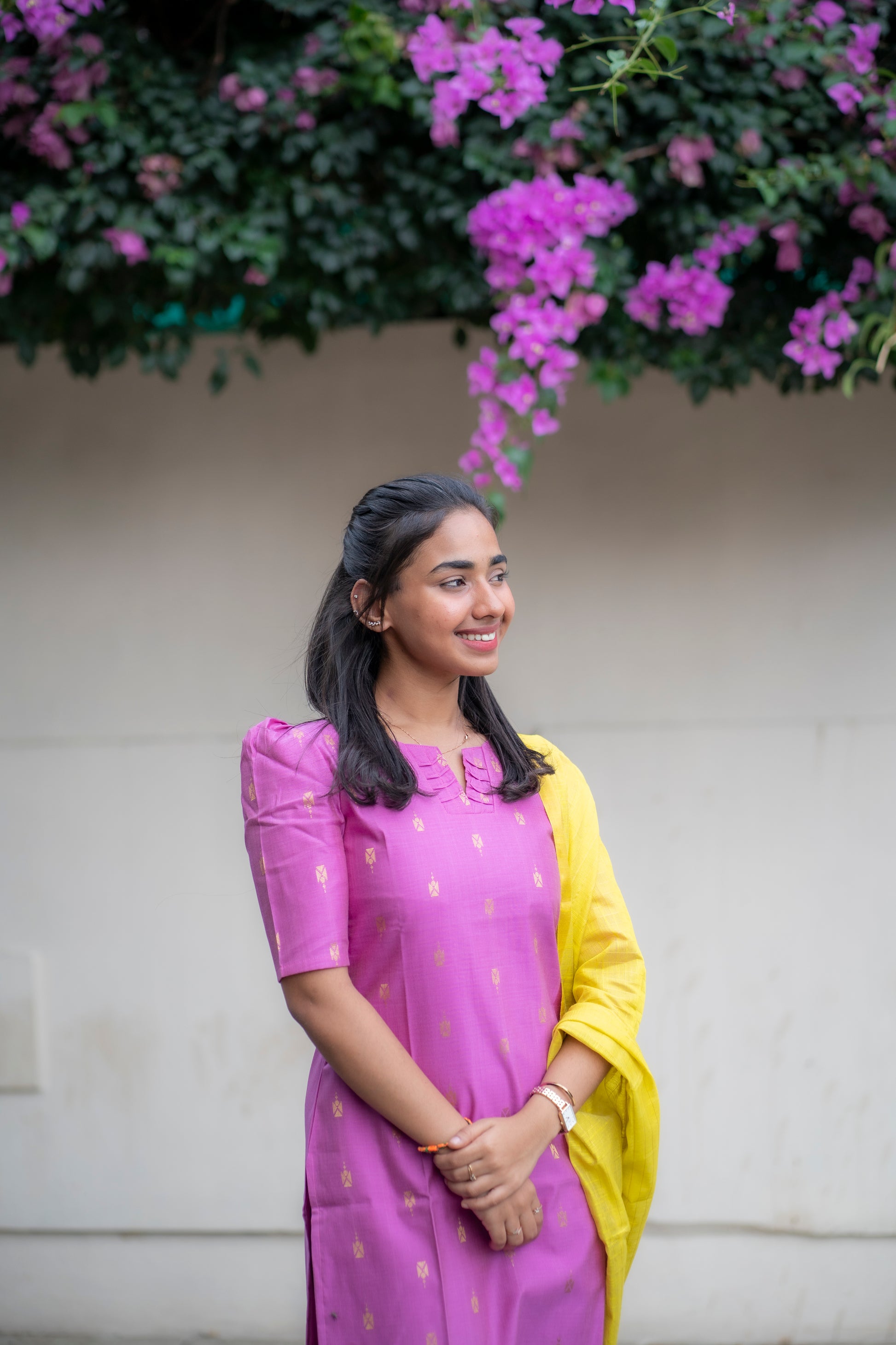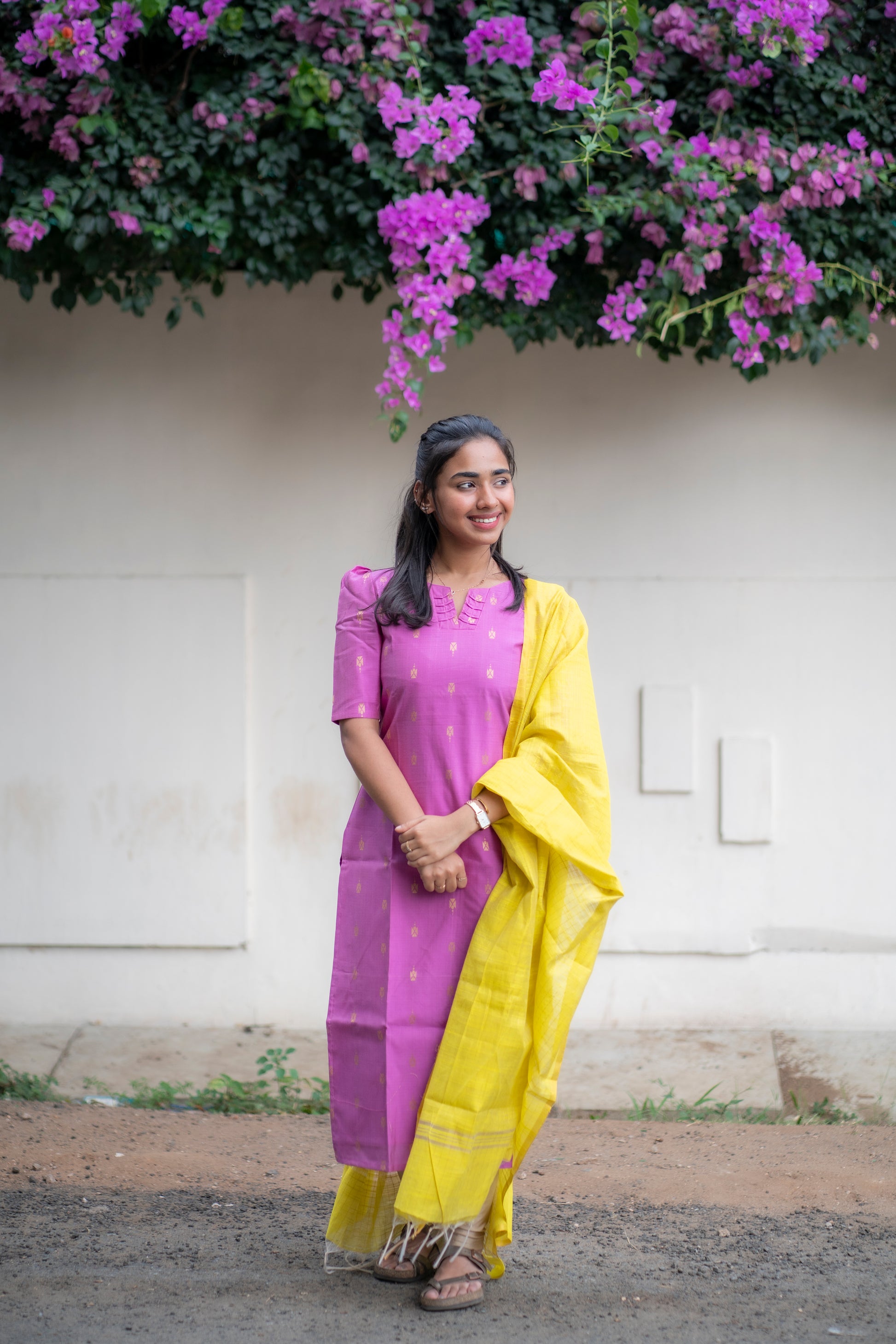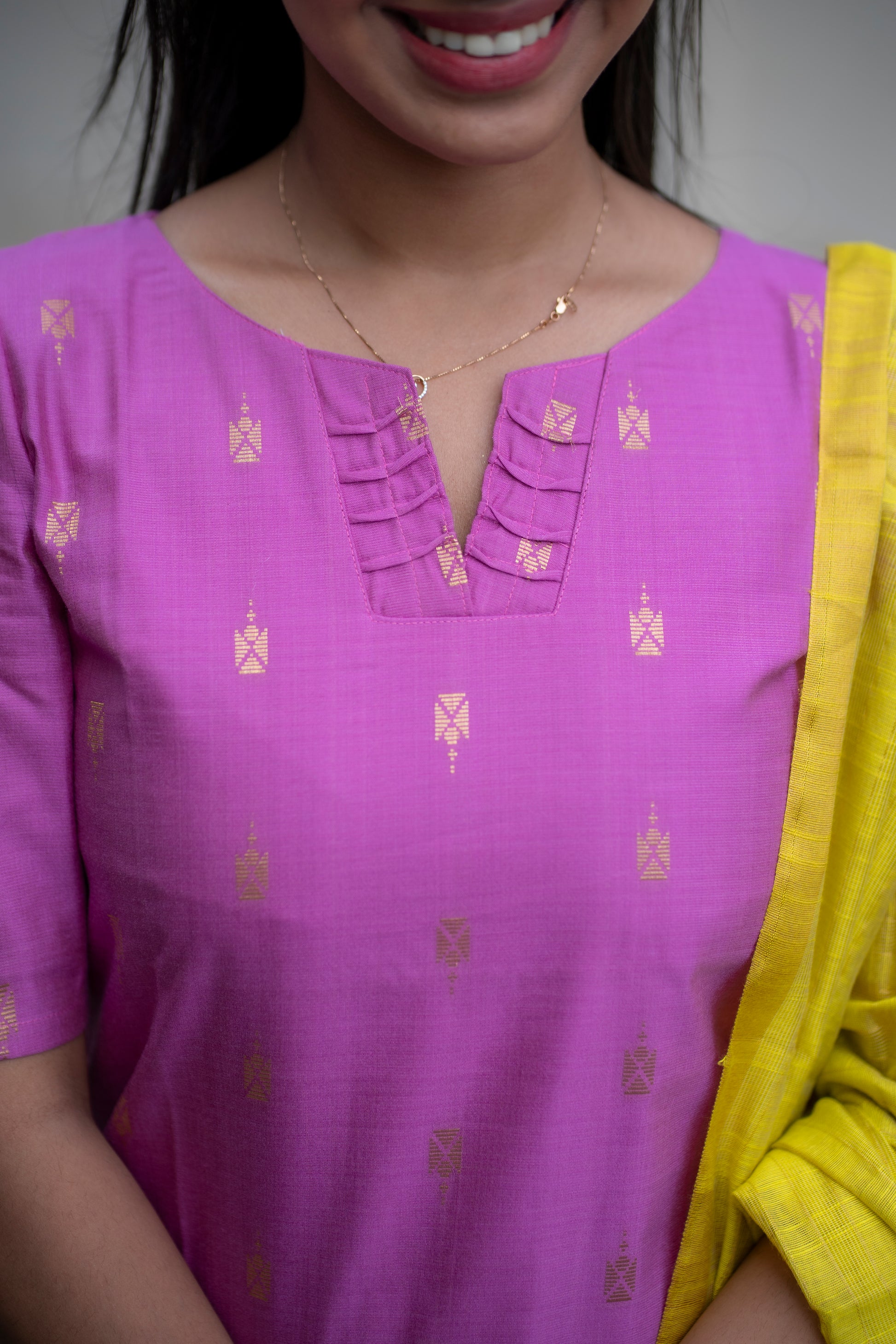 AA095 Lavender Raw Silk Kurti With Neon Colour Dupatta