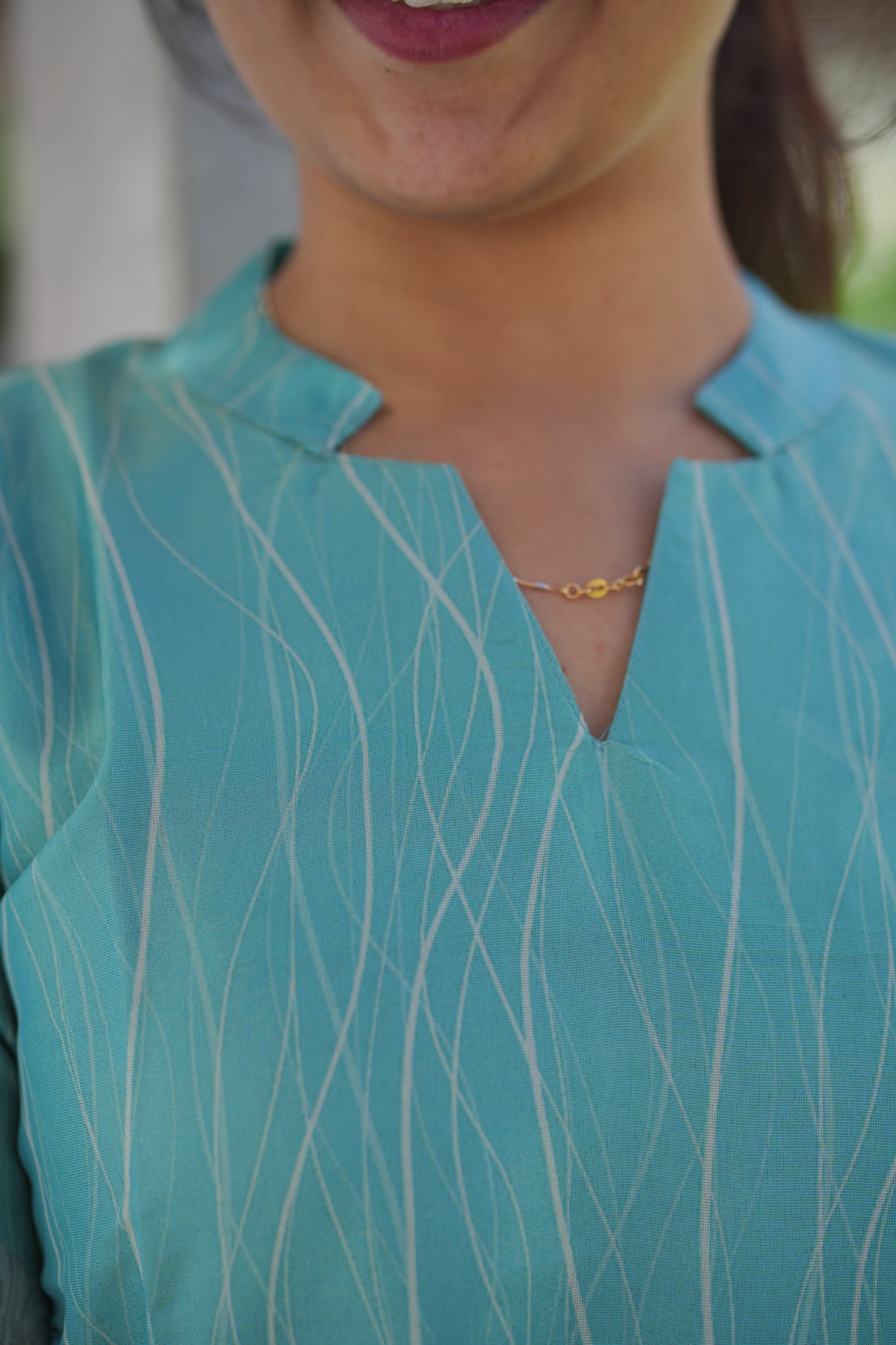 AA113 Blue Lines Tissue Silk Kurti with Dupatta