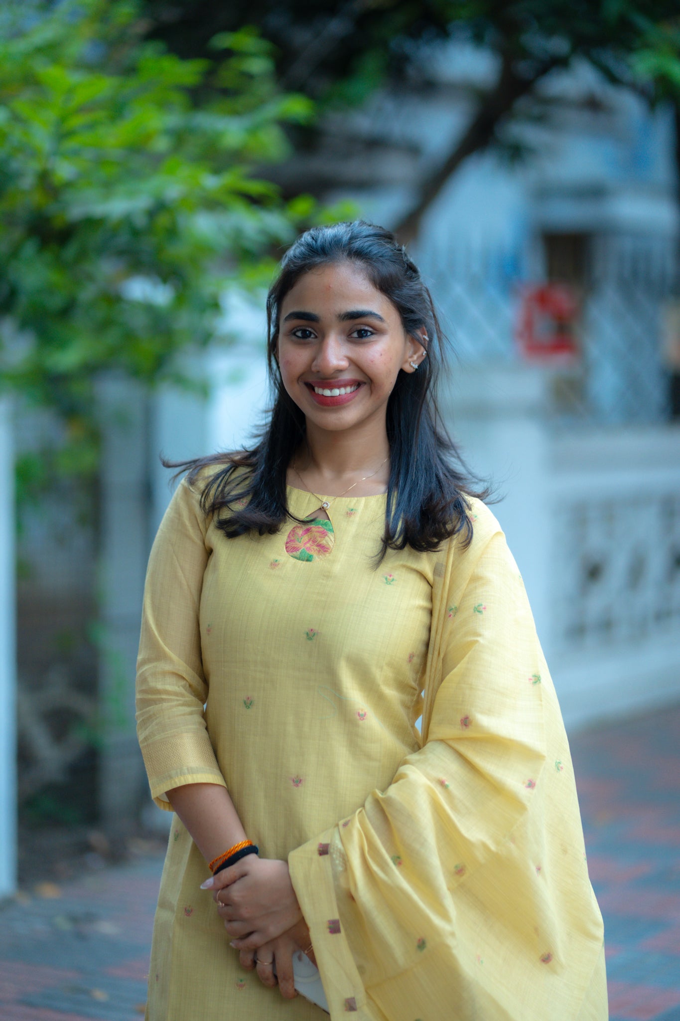 AA133 Yellow Floral Jamdani Silk Kurti with Dupatta