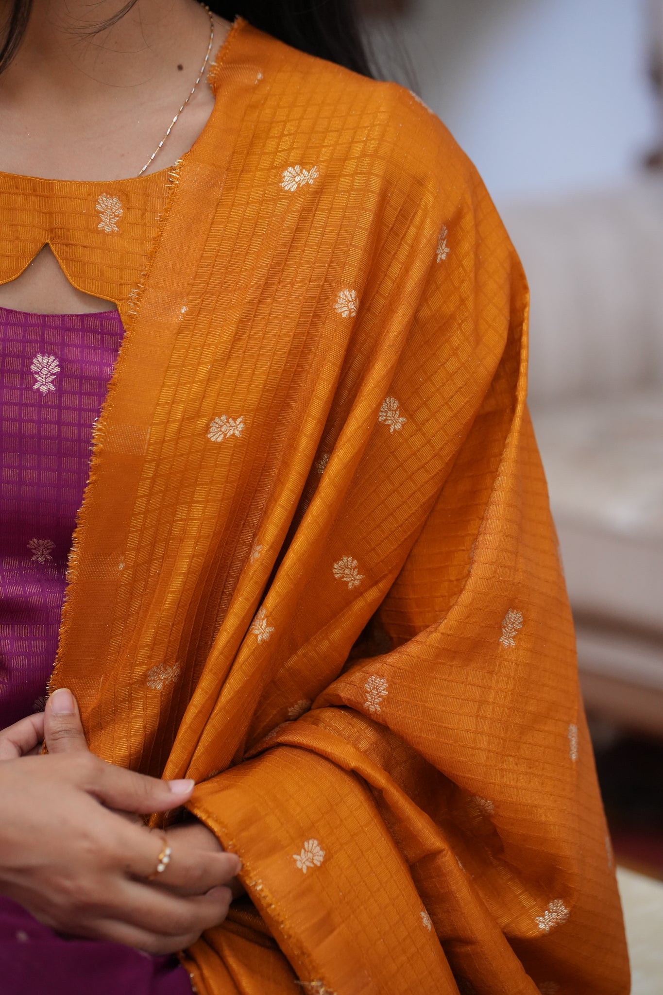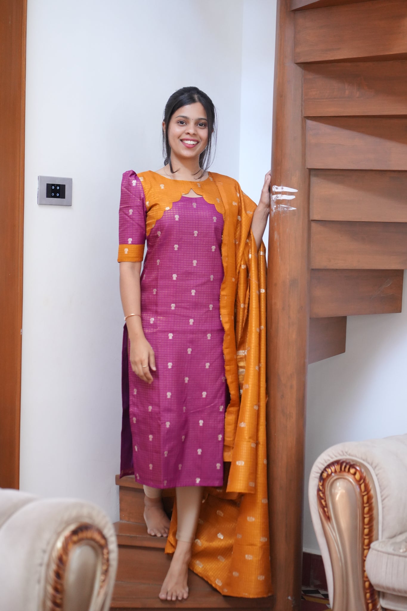 AA159 Violet with Mustard Yellow Combo Dude Silk Kurti with Dupatta