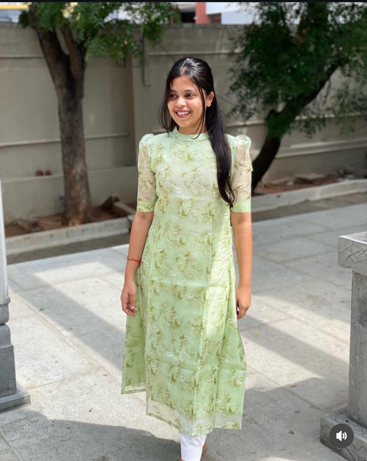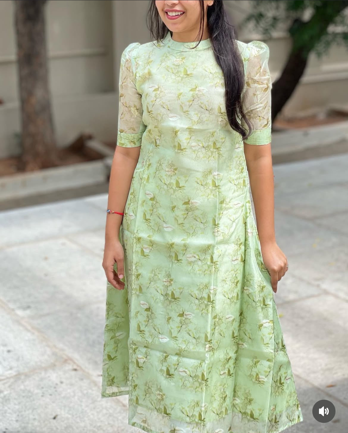 Apple Green Chanderi Silk A-line Kurti