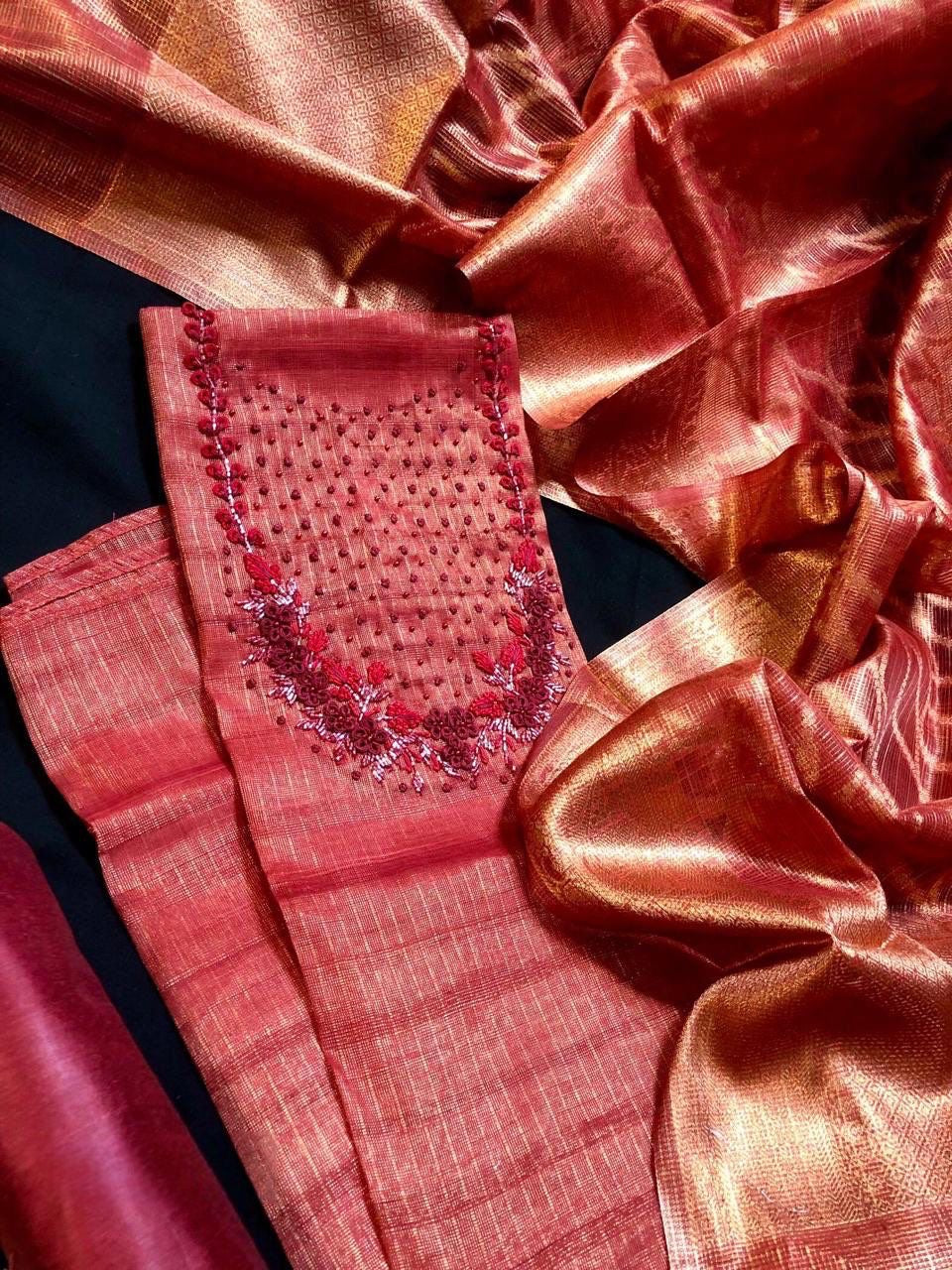 Dark Red Silk Banaras Material (Function Wear)