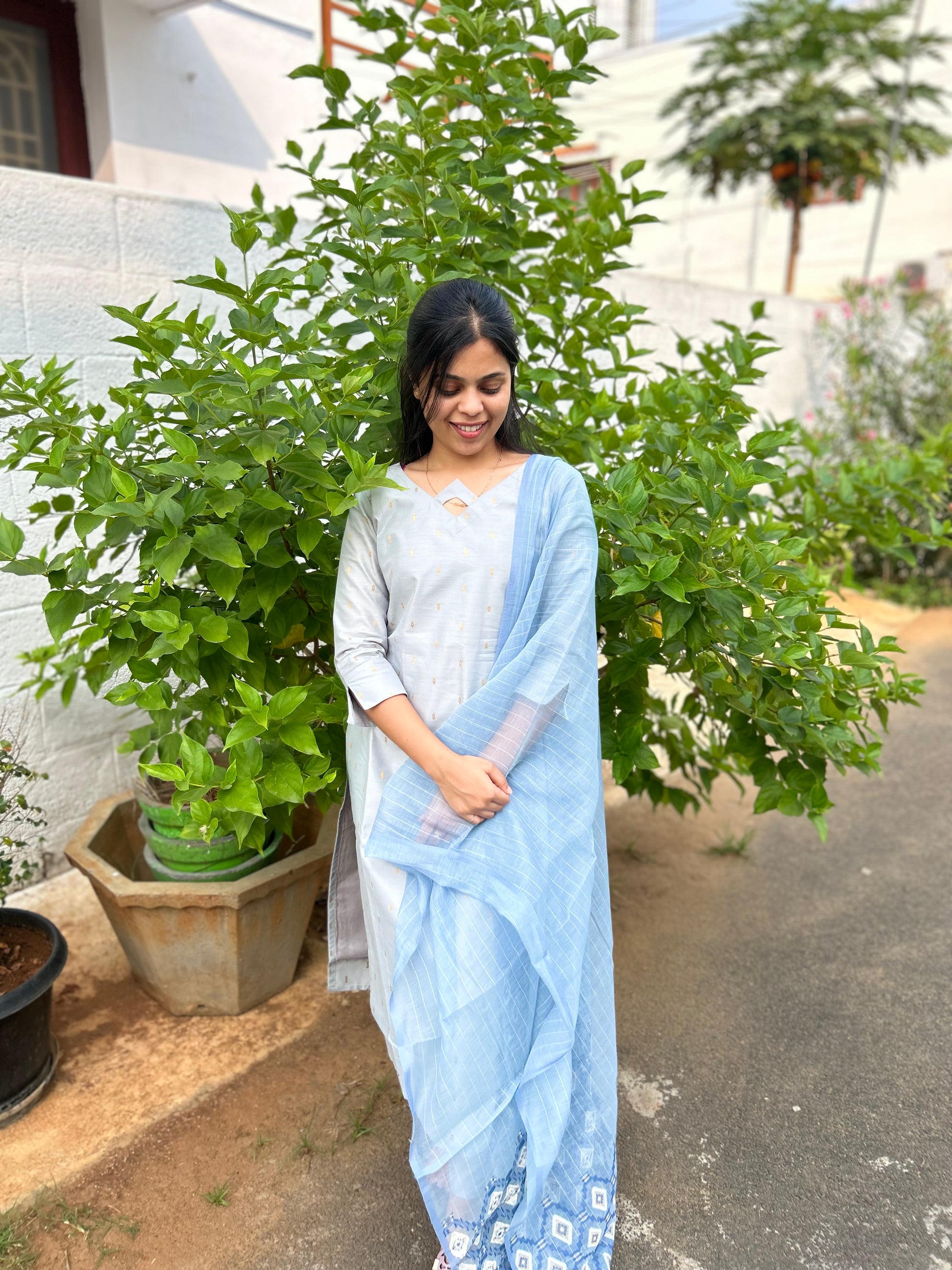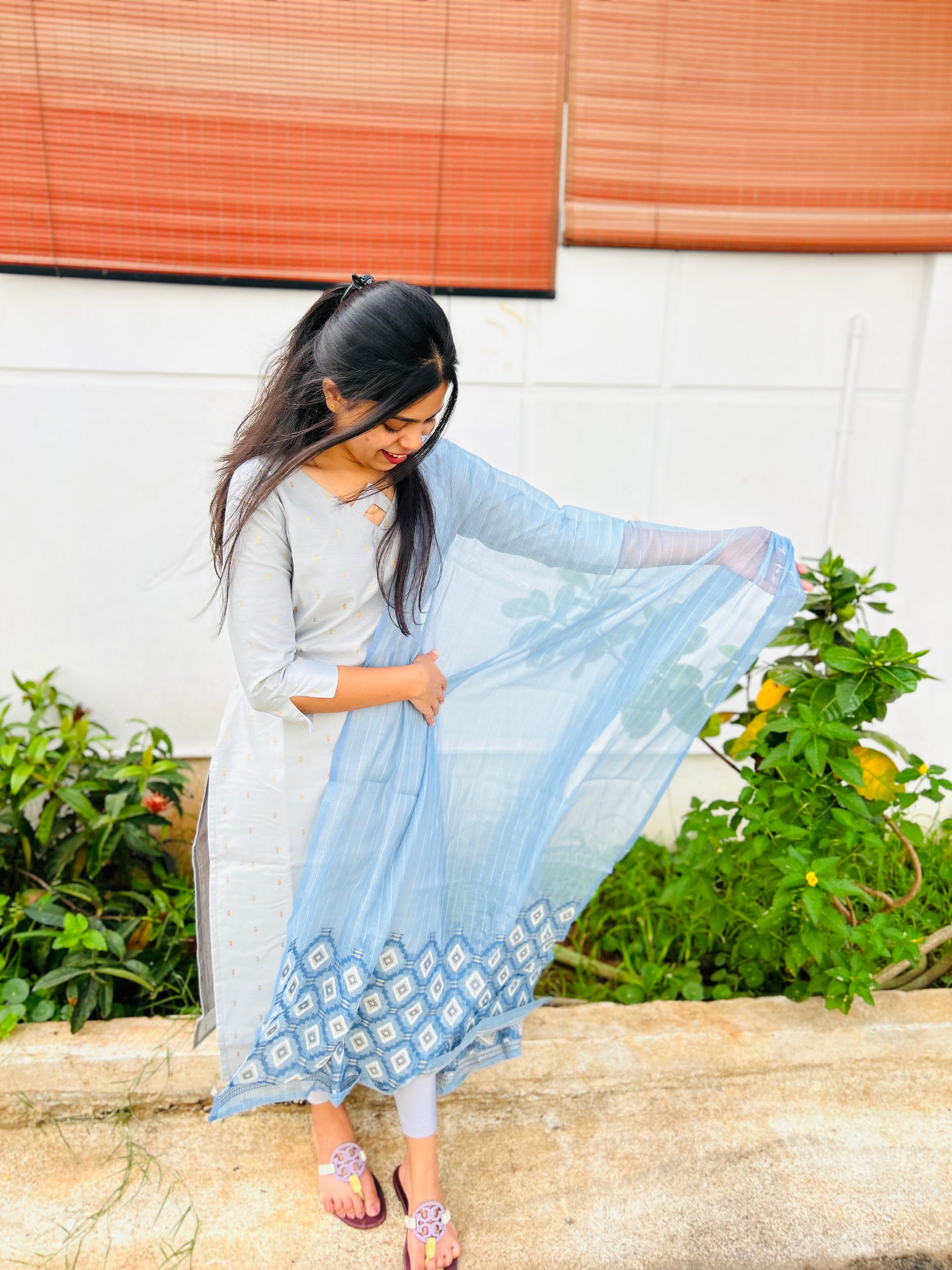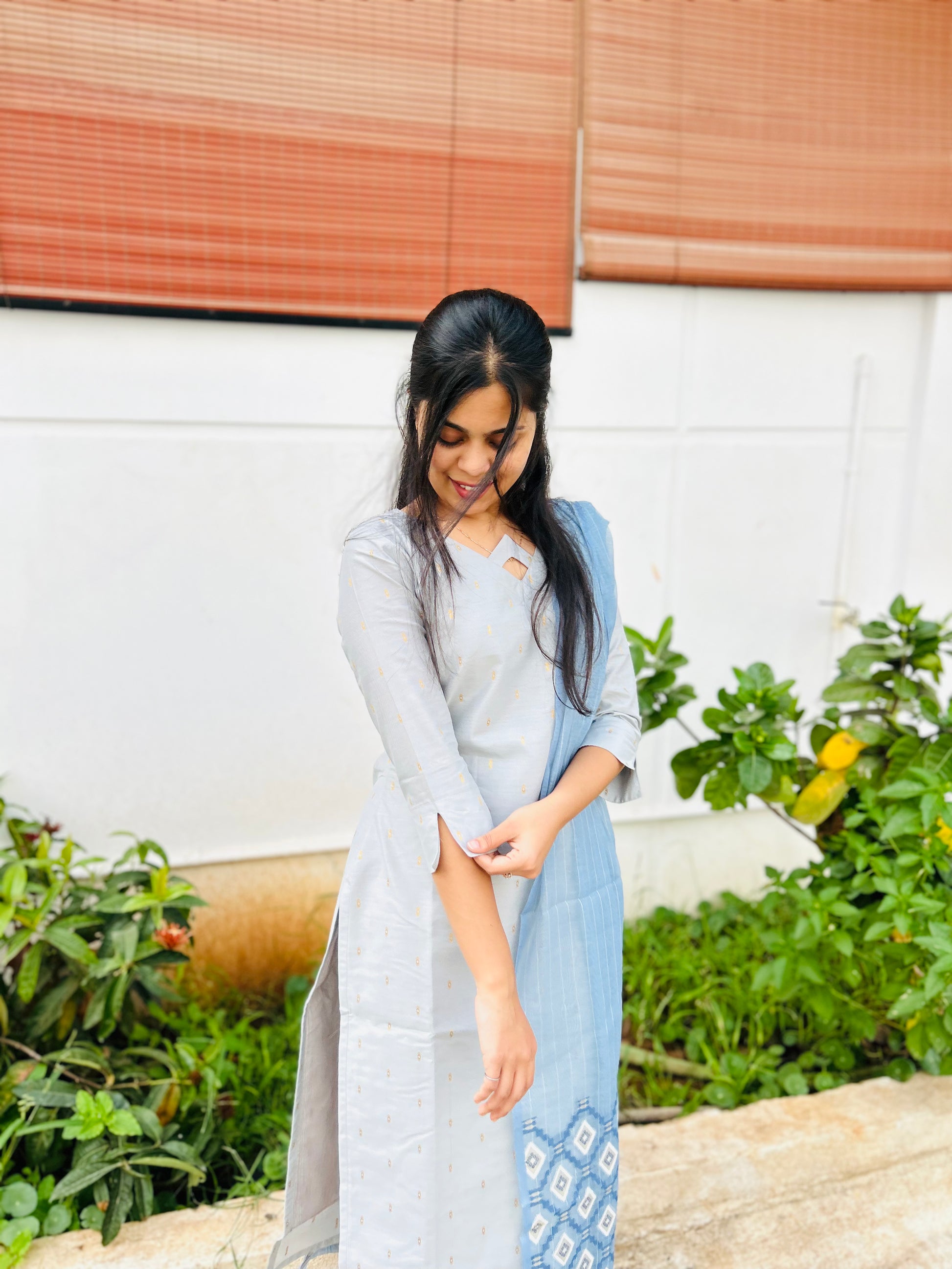 Grey Silk Kurti with Chanderi Jaquard Dupatta