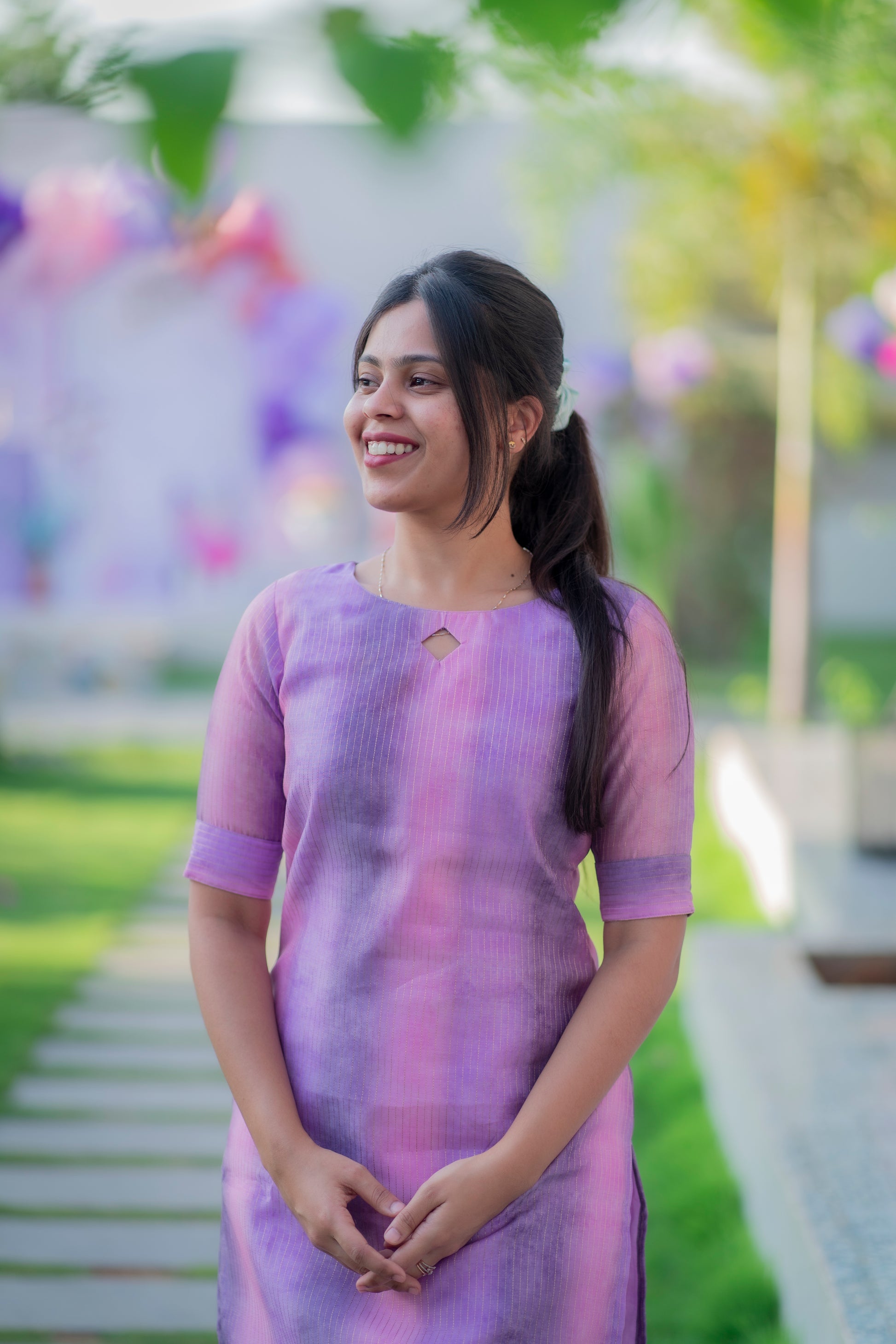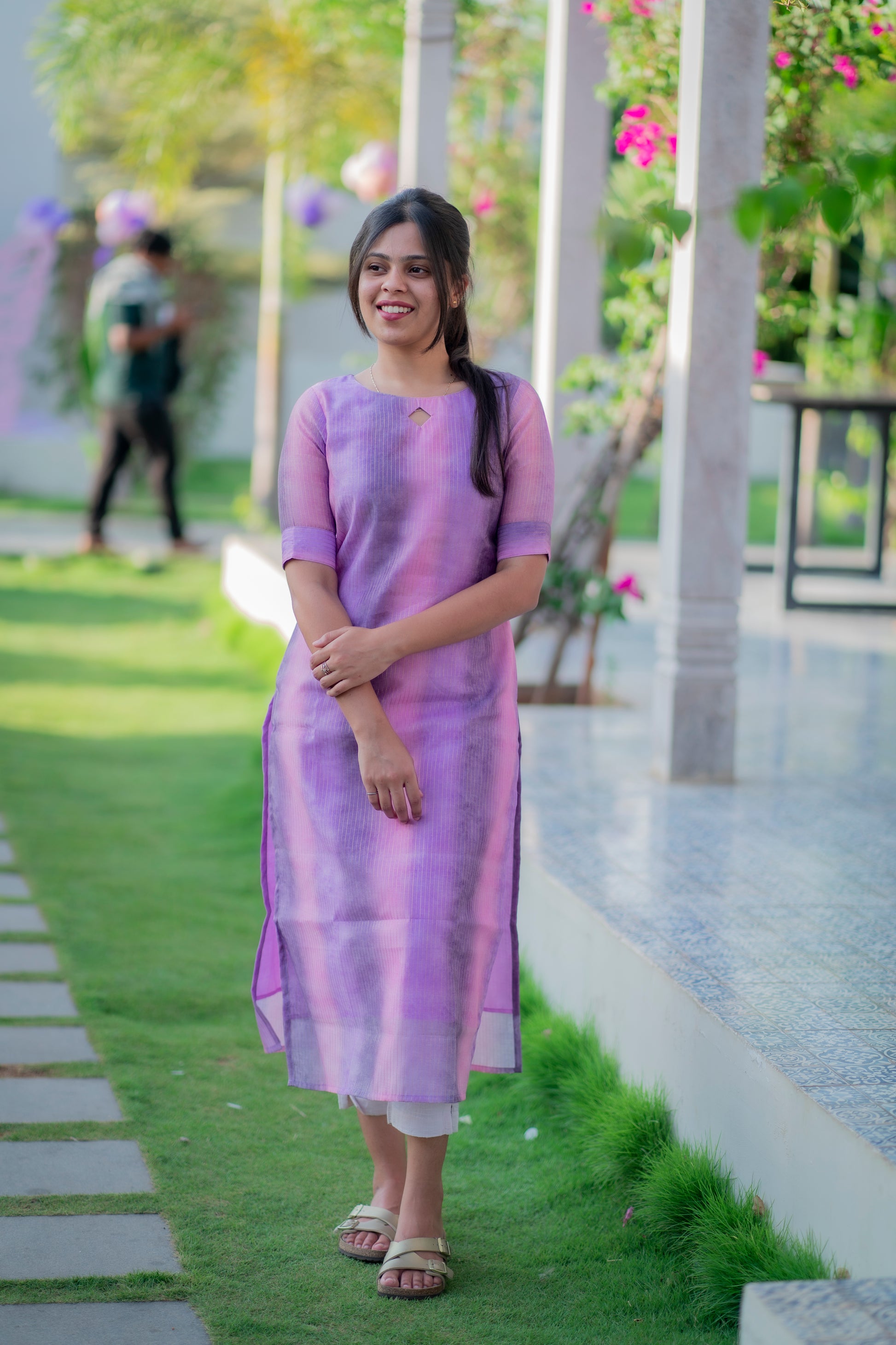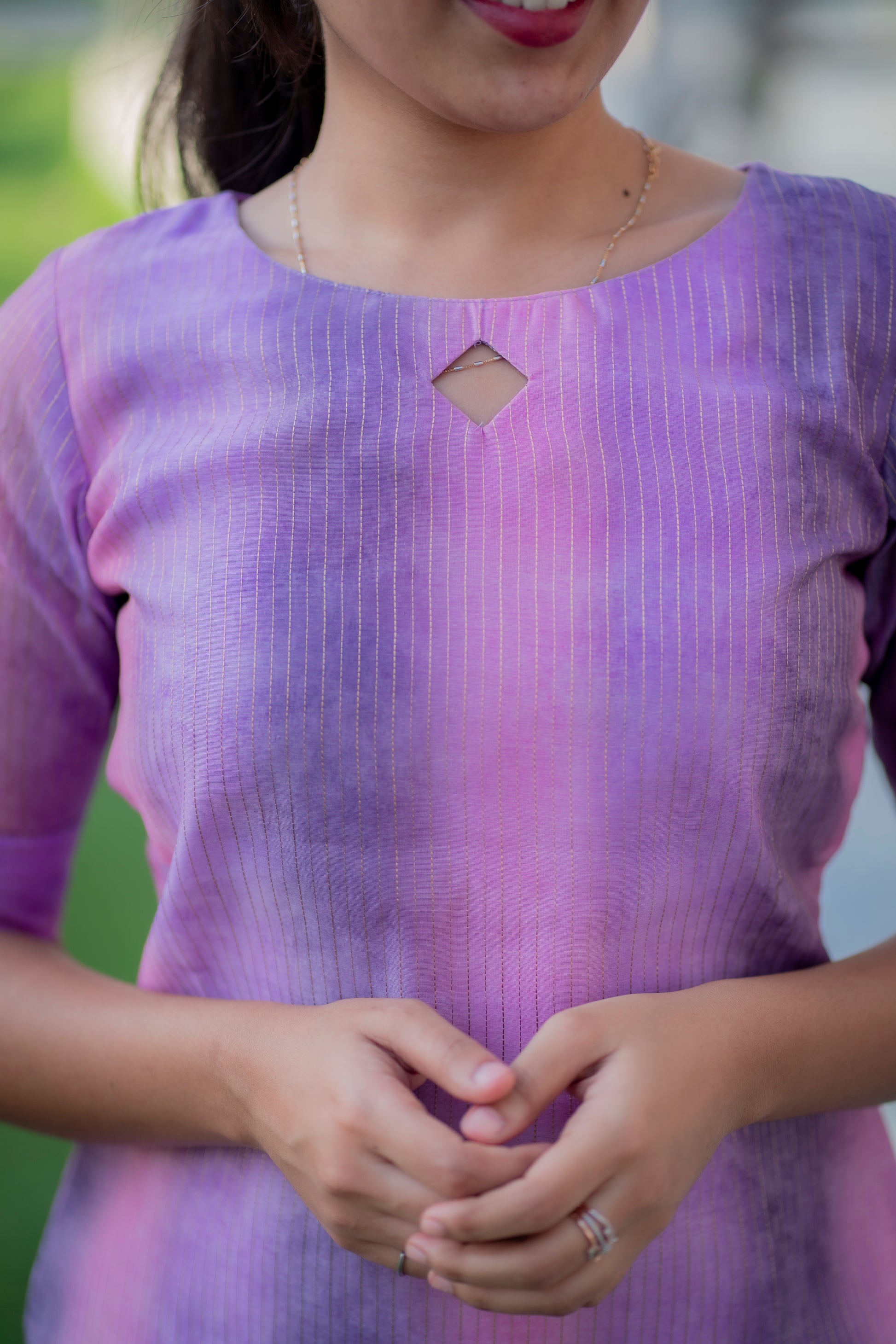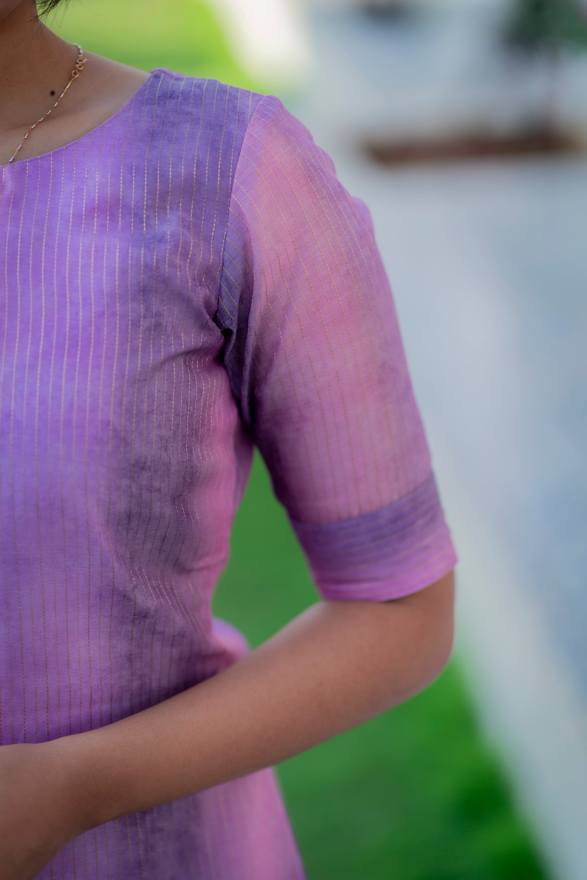 AA040 Lavender cotton zari lines kurti with lining