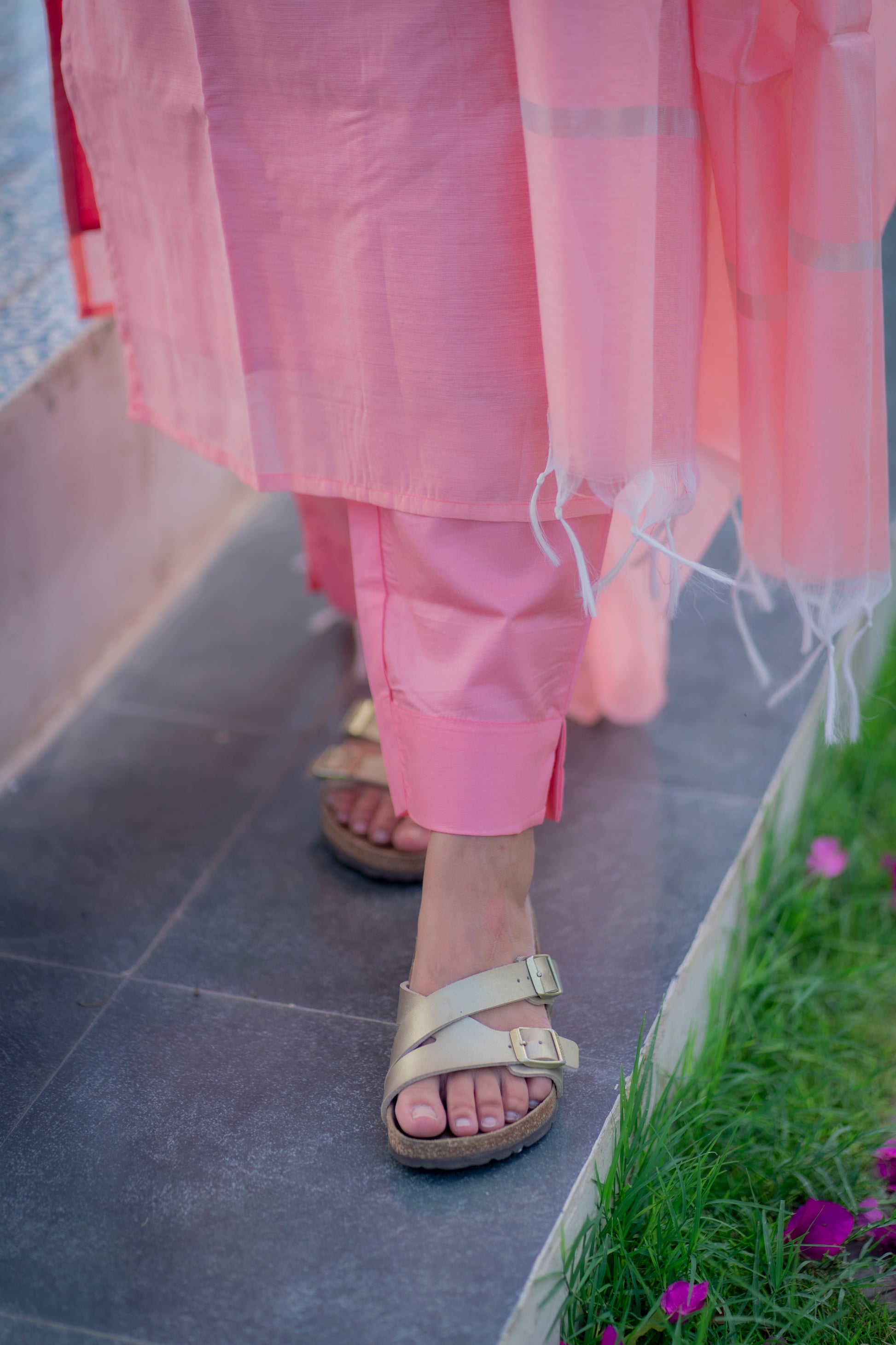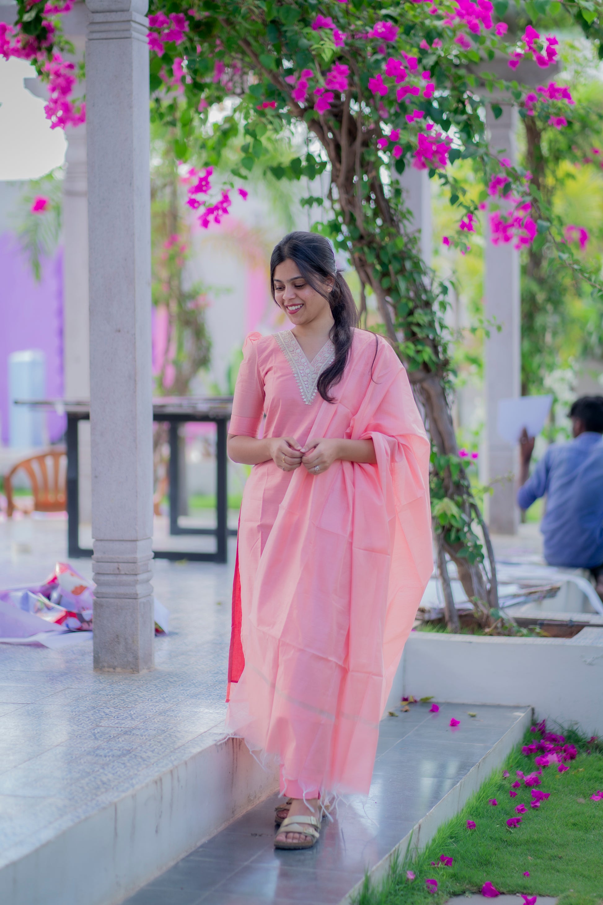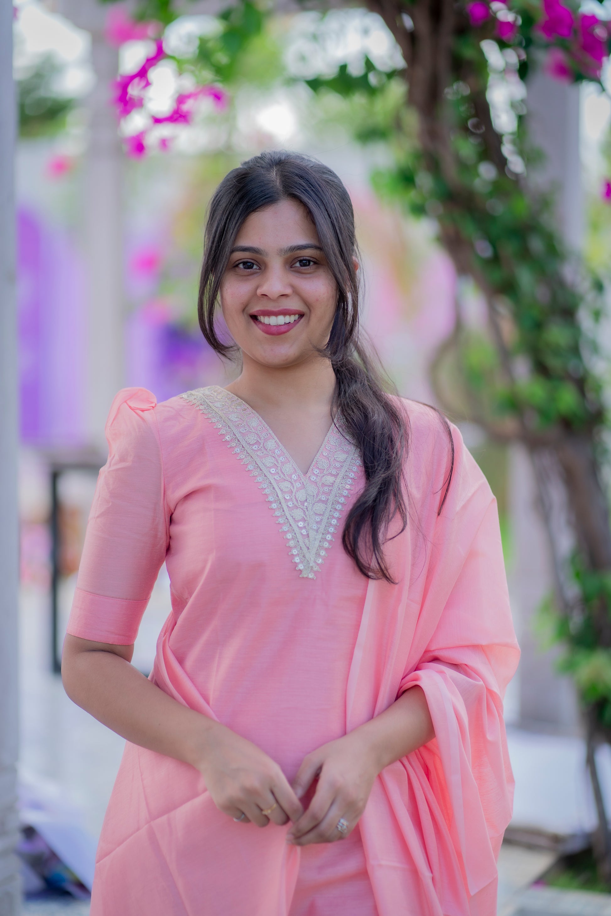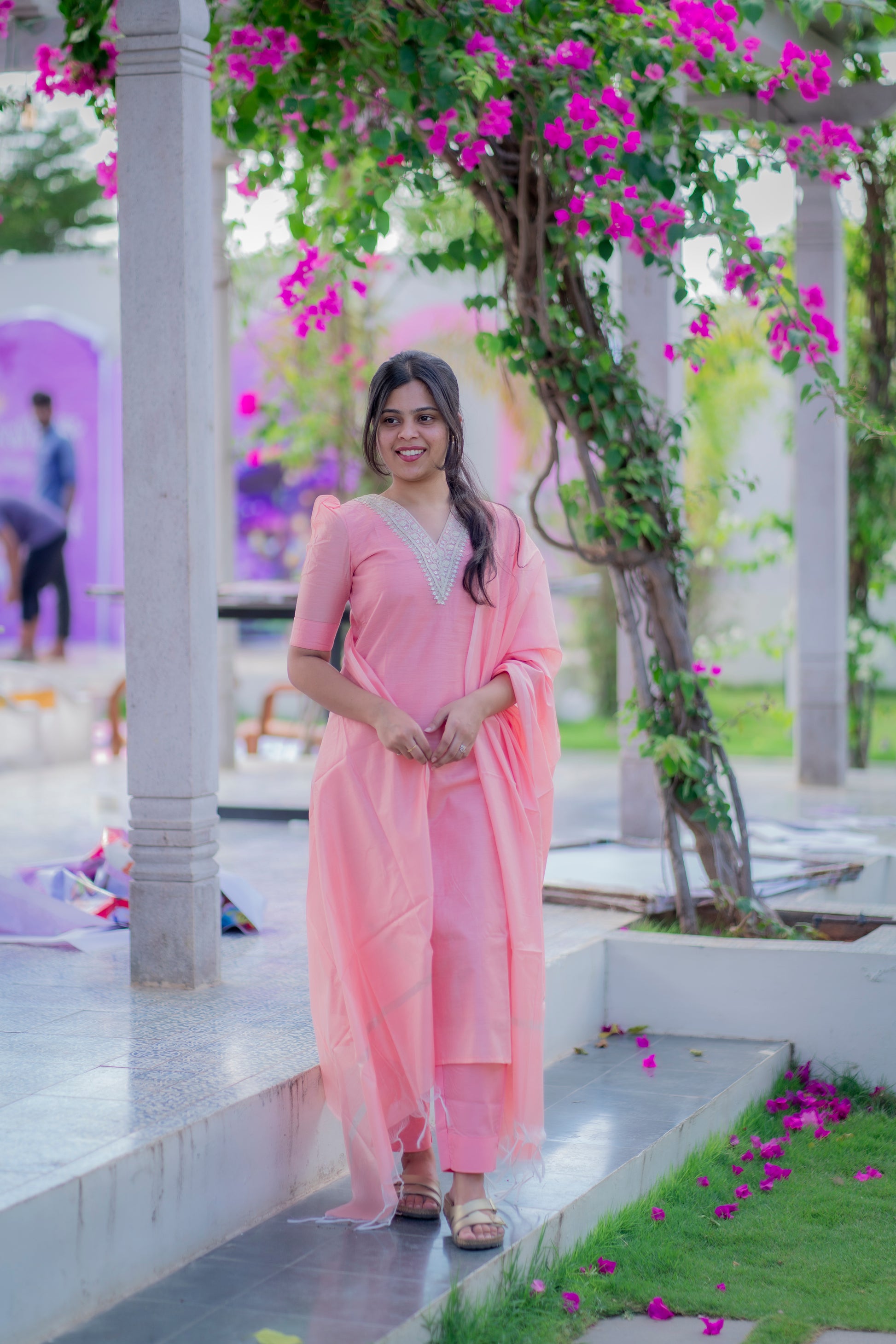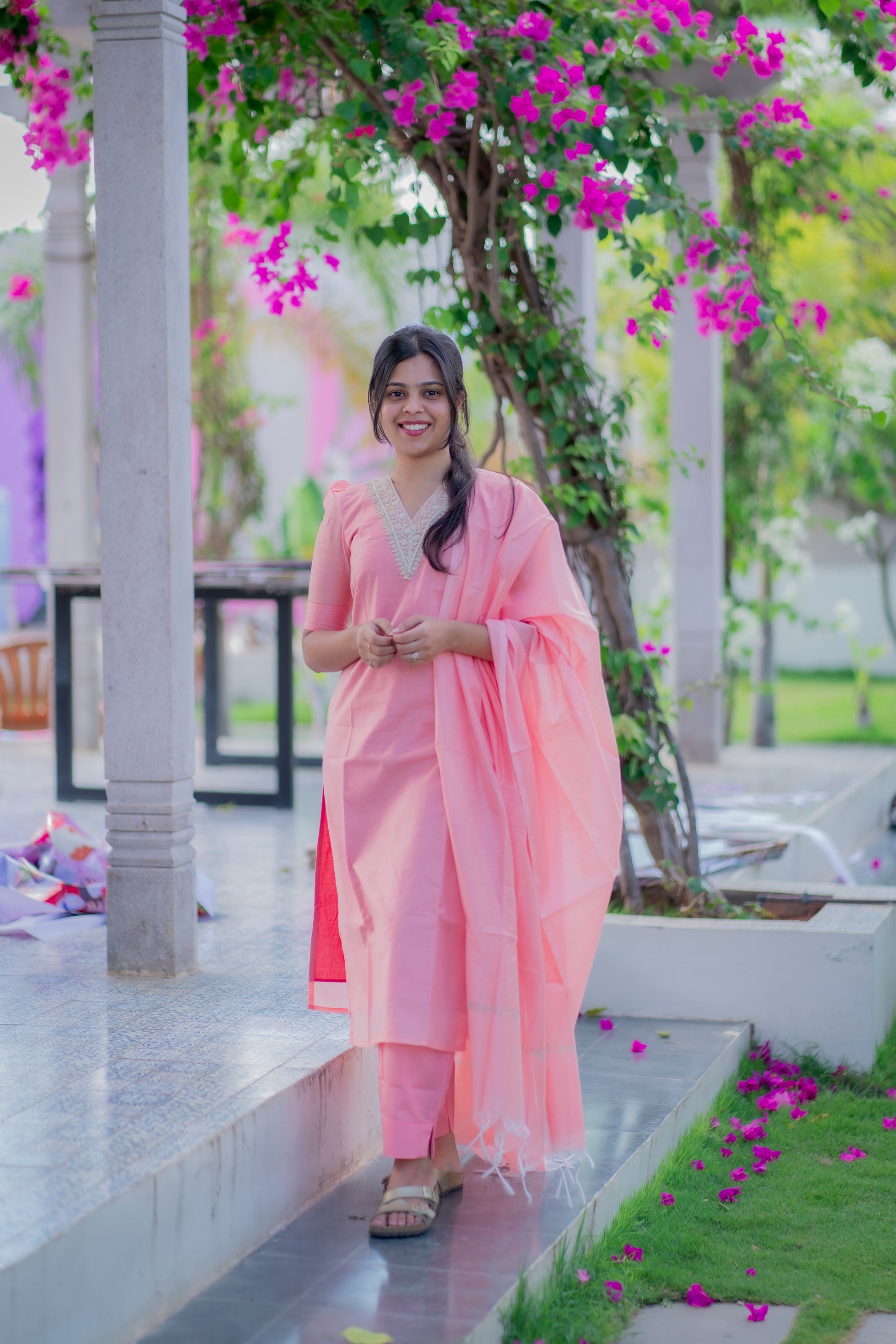 AA042 Peach Cotton Salwar 3 Pc Set (Function Wear)