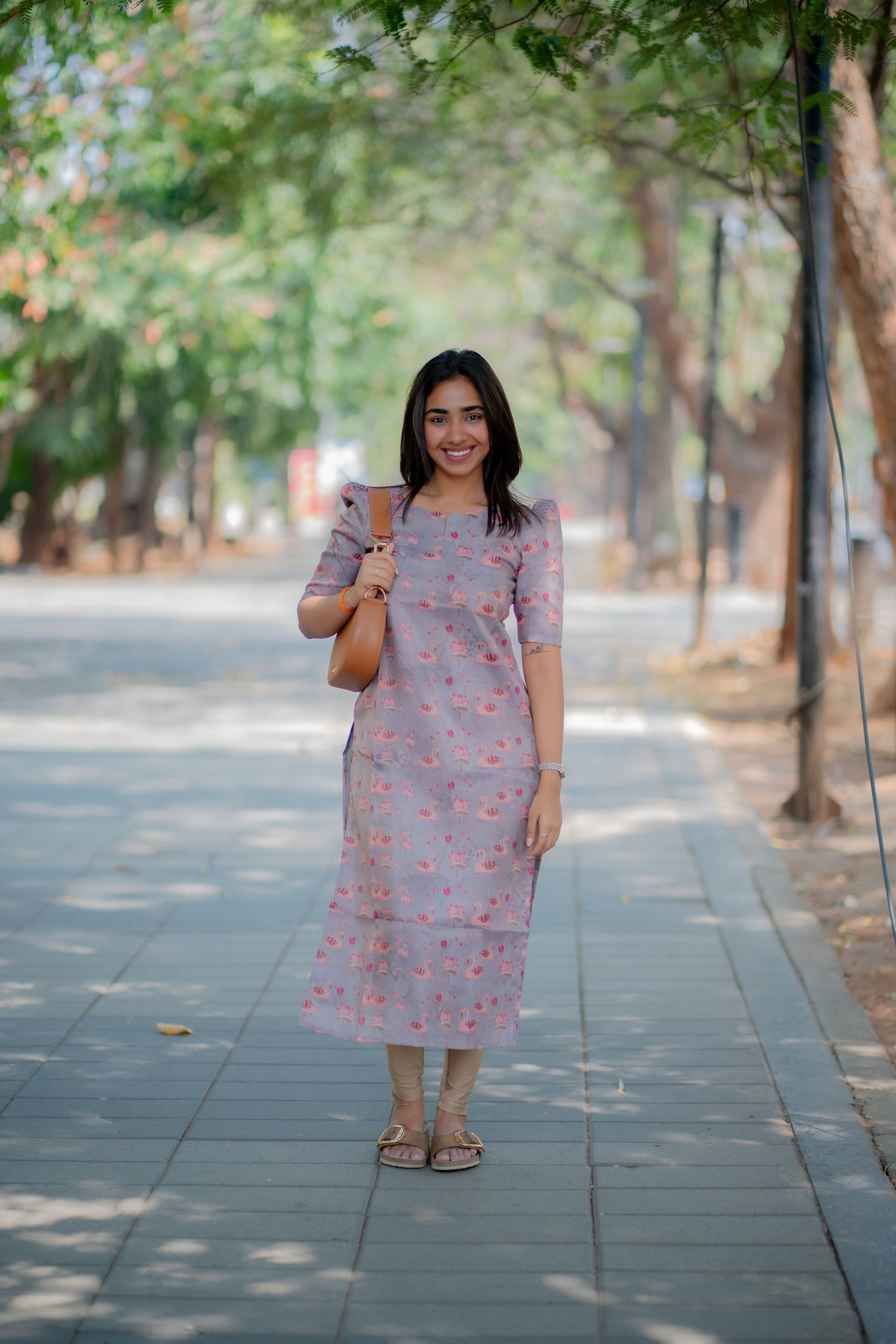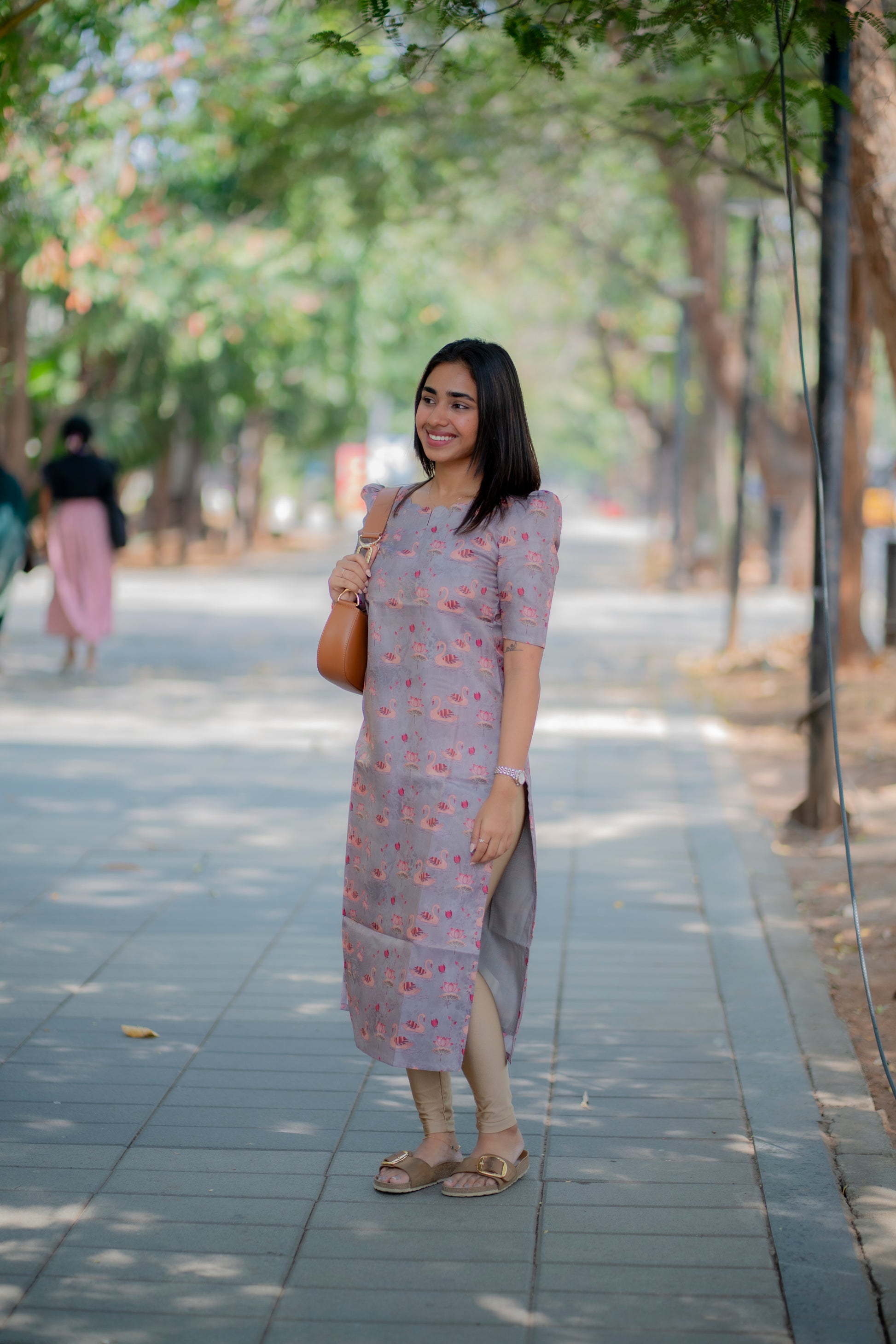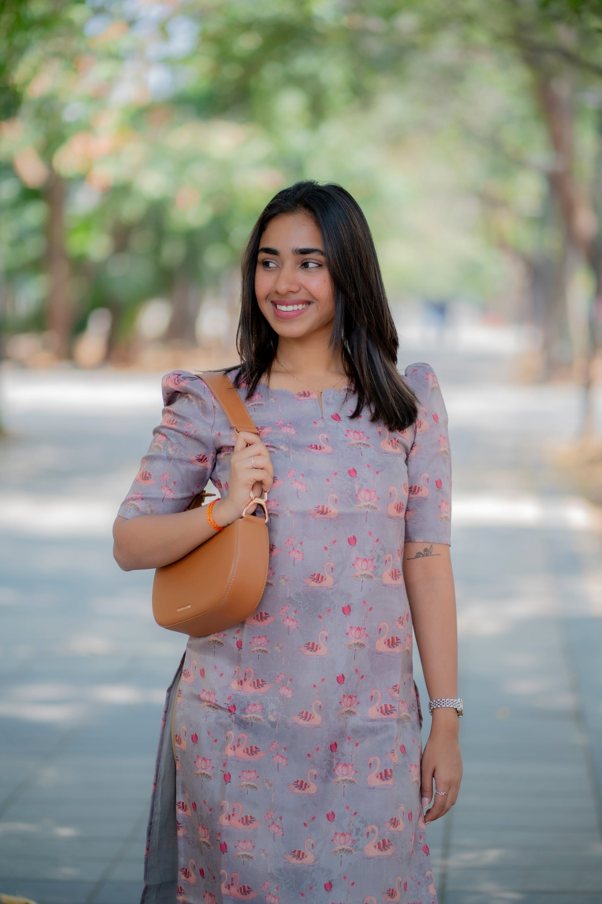 AA190 Grey Swan Shimmer Tissue Silk Kurtih