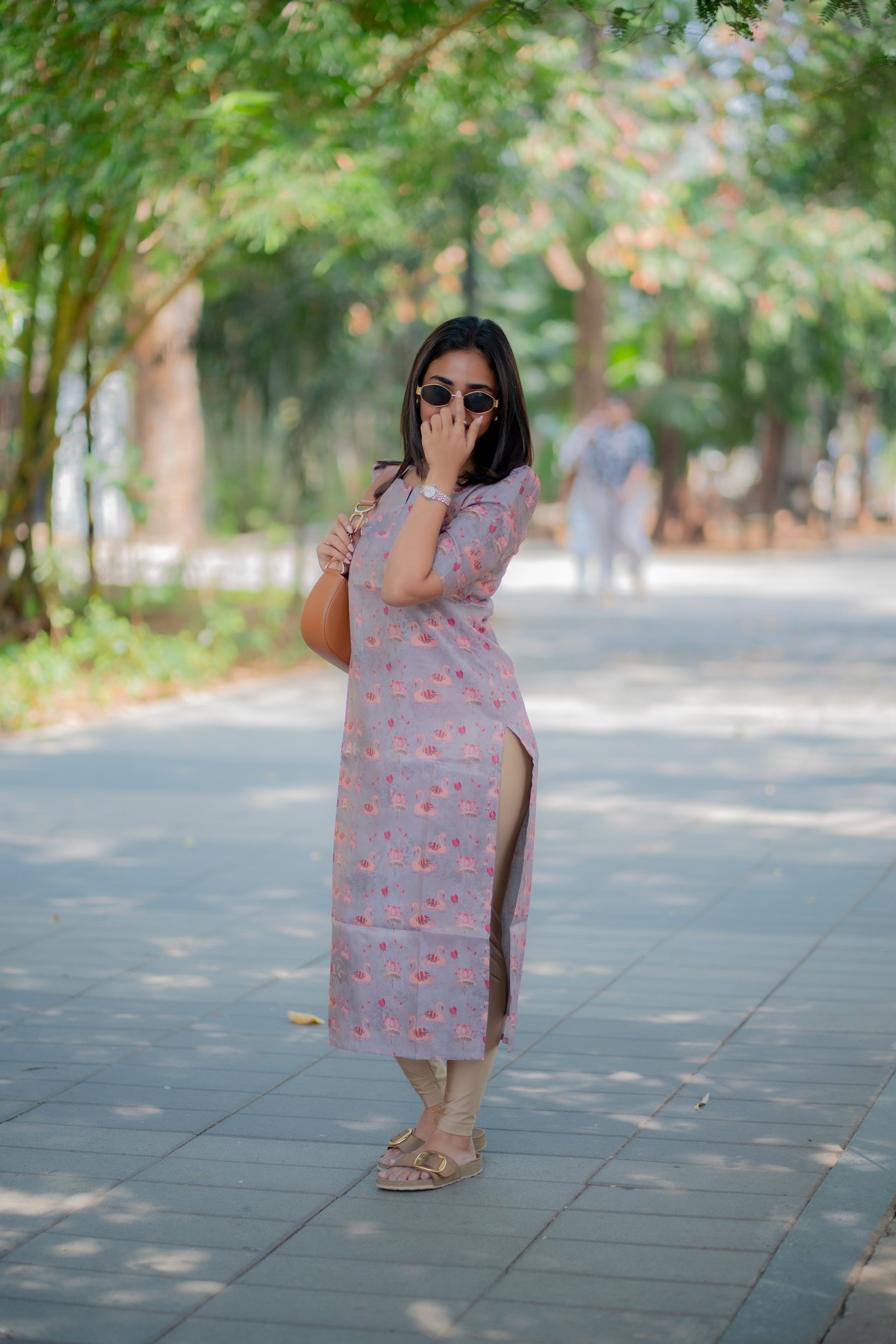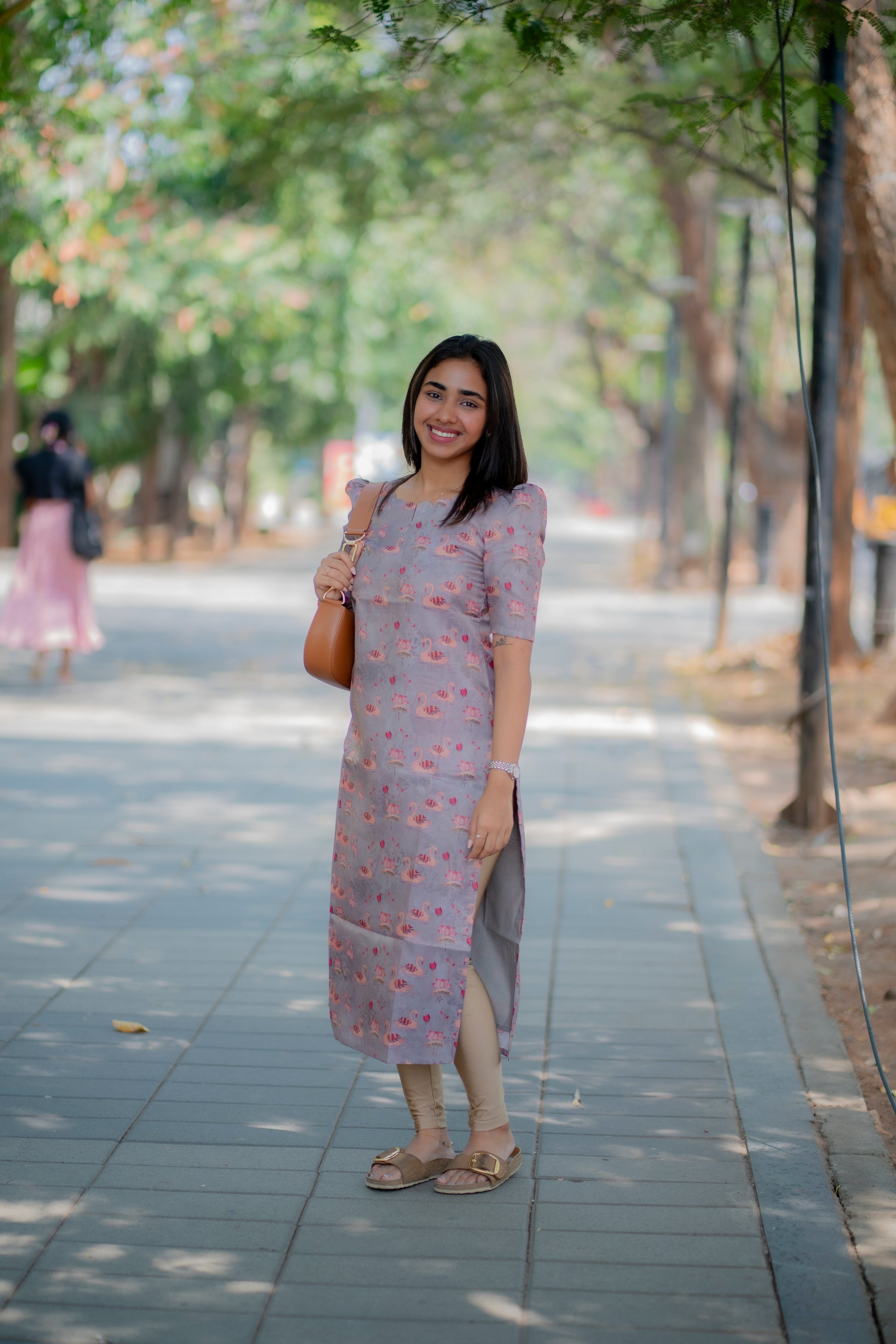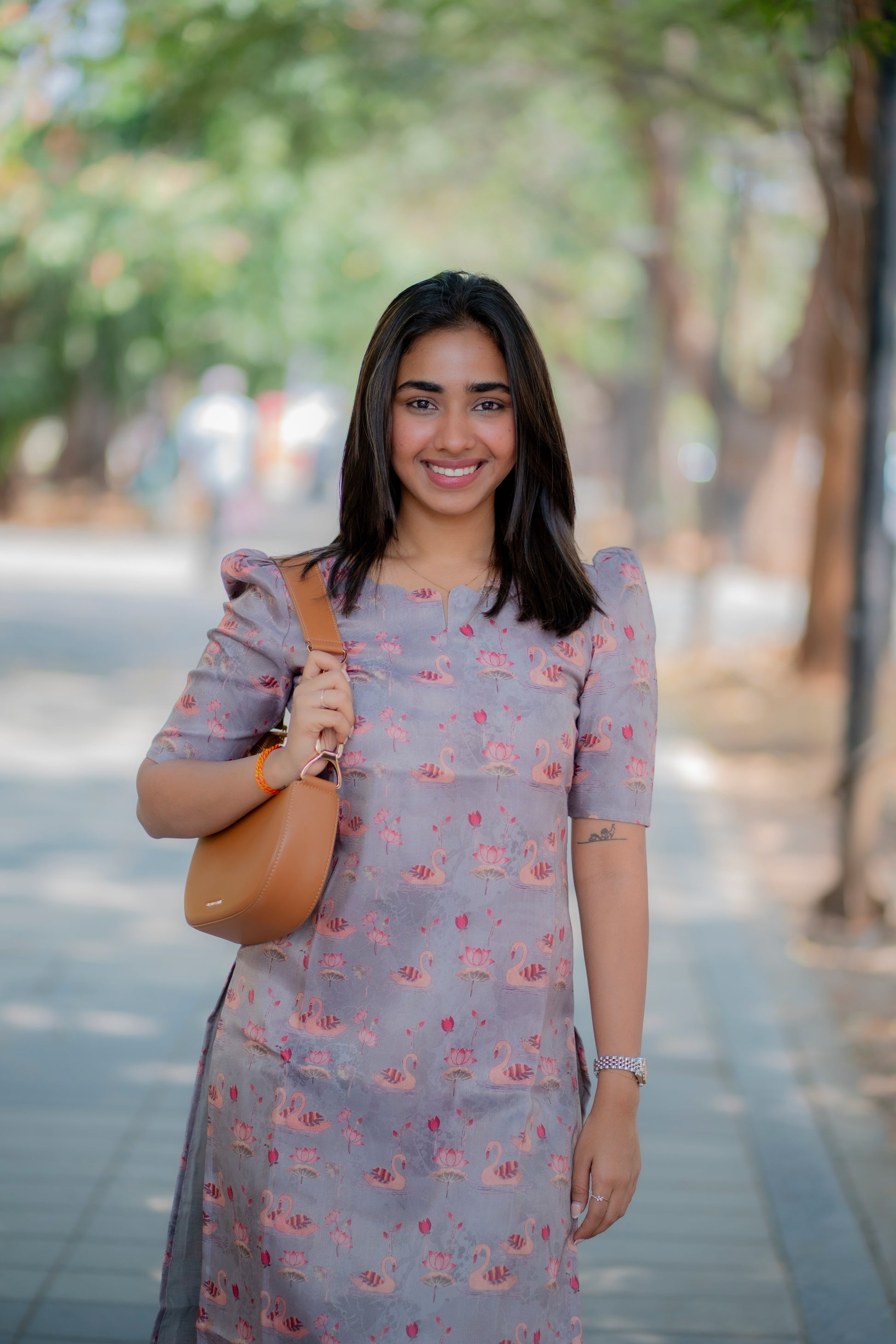 AA190 Grey Swan Shimmer Tissue Silk Kurtih