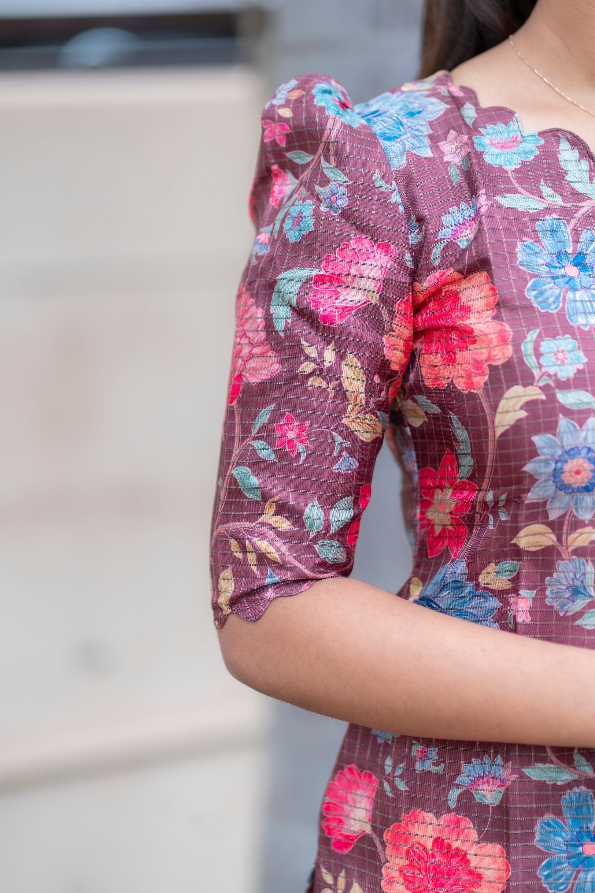 Wine Manipuri Checks Kurti